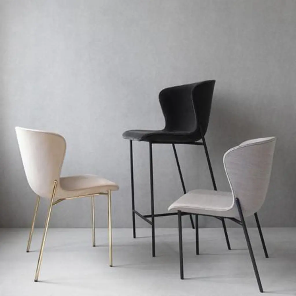 Friends and Founders proudly present "La Pipe" chair or the pipe chair if you prefer. This chair collection features a new soft low lounge chair, a dining chair, counter and bar stool. La Pipe is the result of designer Ida Linea Hildebrand's passion for refined forms and strong silhouettes combined with Friends and Founders knowledge about modern production with strong focus on hand craftmanship and detailing. La Pipe Chair is fully upholstered including piping. Shell in casted CMHR foam (fire retardant) Piping colour is always the same as back material. Frame available in powder coated black, brass or chrome plated steel. Includes plastic gliders. Felt gliders +10 USD. Stacking pad (available on request).