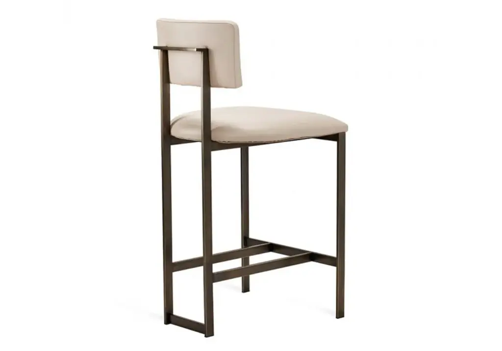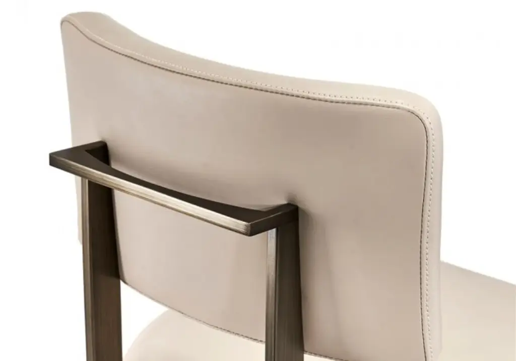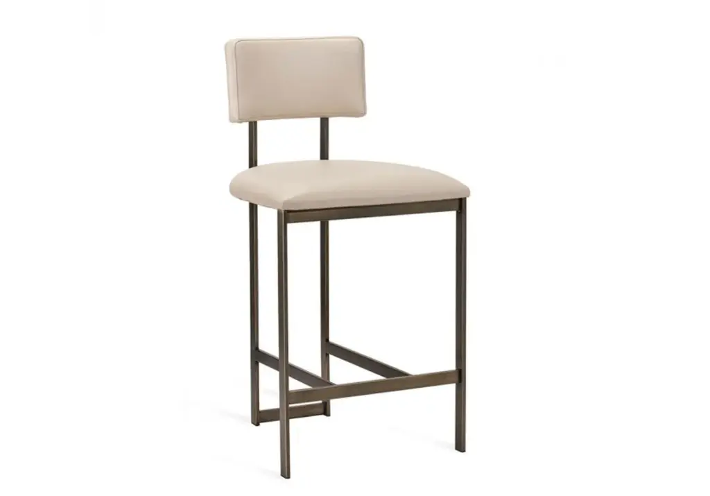 The Landon is a handsome addition with its clean steel base finished in antique bronze. A cream faux leather seat and back cushion complements its elegant design, styling beautifully along counters or islands.
