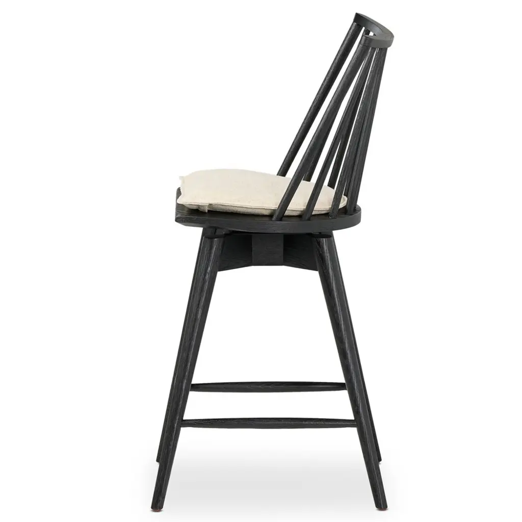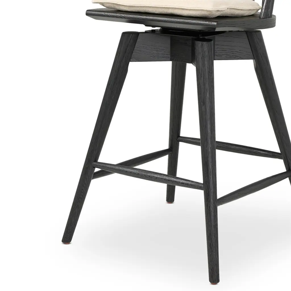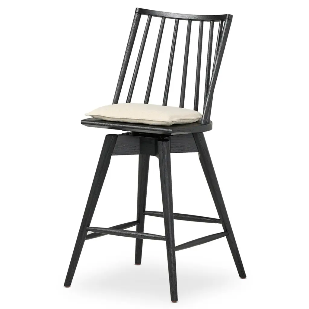 Lara Rustic Lodge Cream Performance Black Oak Swivel Windsor Counter Stool