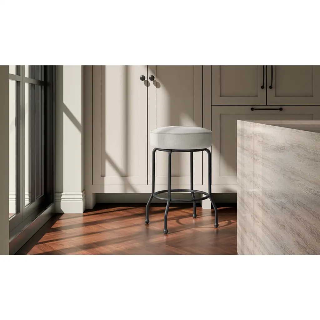 Lauren Modern Classic Beige Performance Black Iron Swivel Counter Stool