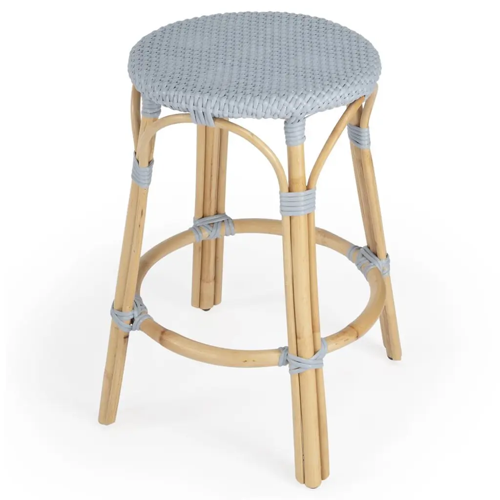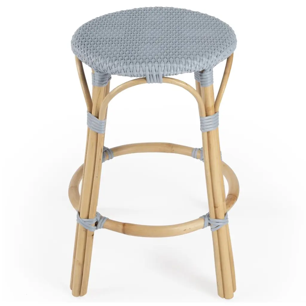 Lily Coastal Beach Blue Woven Brown Rattan Frame Counter Stool