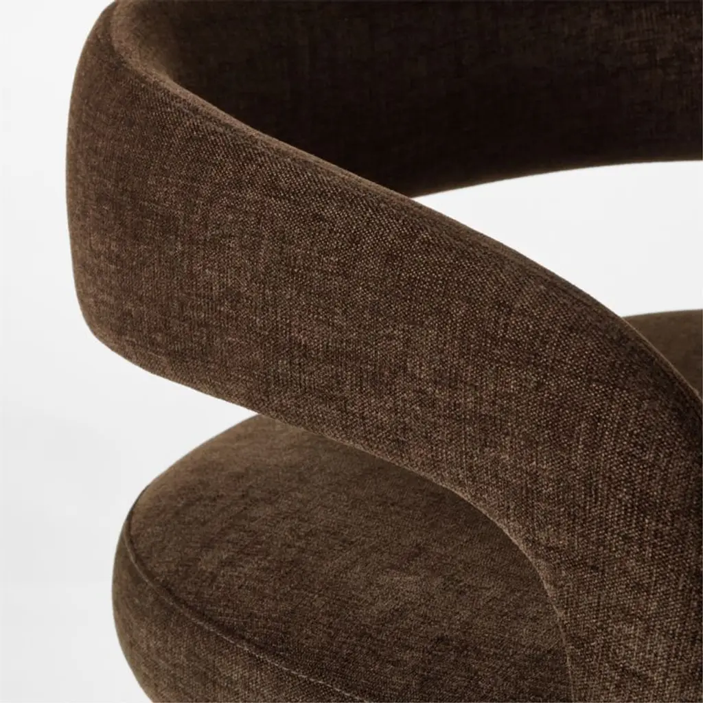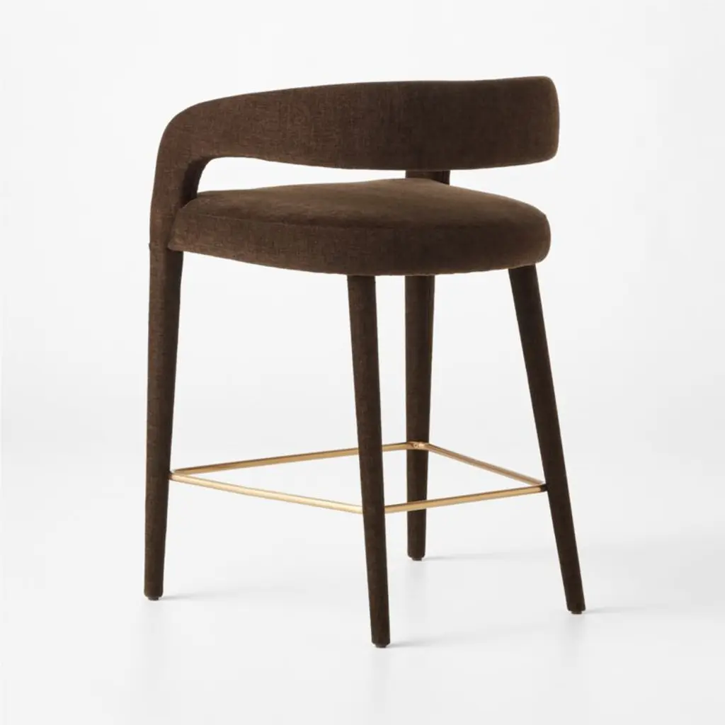 Designed by fashion-designer-turned-home-designer Brett Beldock, this sculptural counter stool brings a bit of sophistication to any space. Updating the traditional barrel chair design, this fresh take is more open and lighter in feeling. Upholstered in a warm copper performance fabric, counter stool has a luxe look and feel. CB2 exclusive.