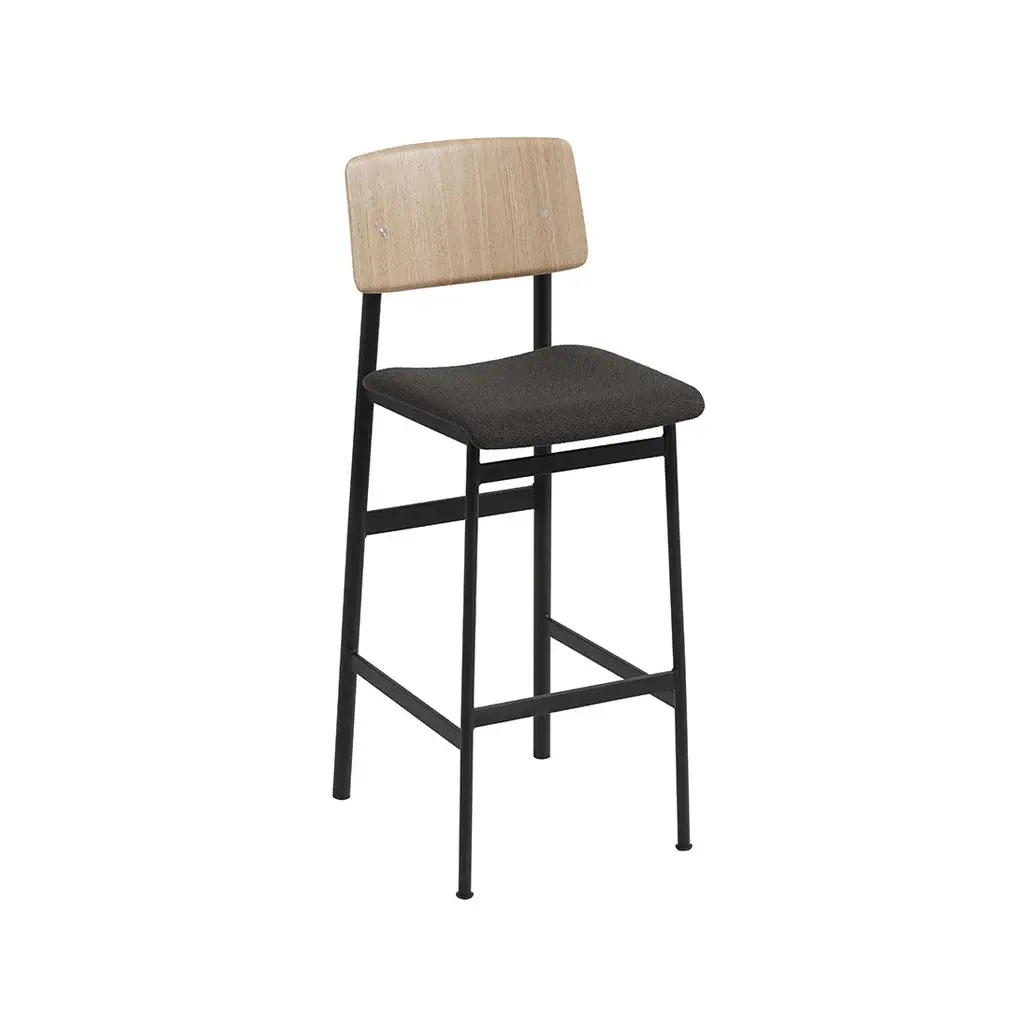 Already having a generously proportioned curved seat and backrest, Mutto’s counter stool version of Loft adds upholstered cushioning to the comfort equation. Retaining its compact footprint thanks to its legs being positioned neatly under the seat, designer Thomas Bentzen's wood-backed seating extols the virtues of clean-lined design in the Nordic tradition, now updated with a powder-coated steel frame. Additionally, the choice of fine fabric or leather lends a custom look to suit any chosen residential or hospitality setting.