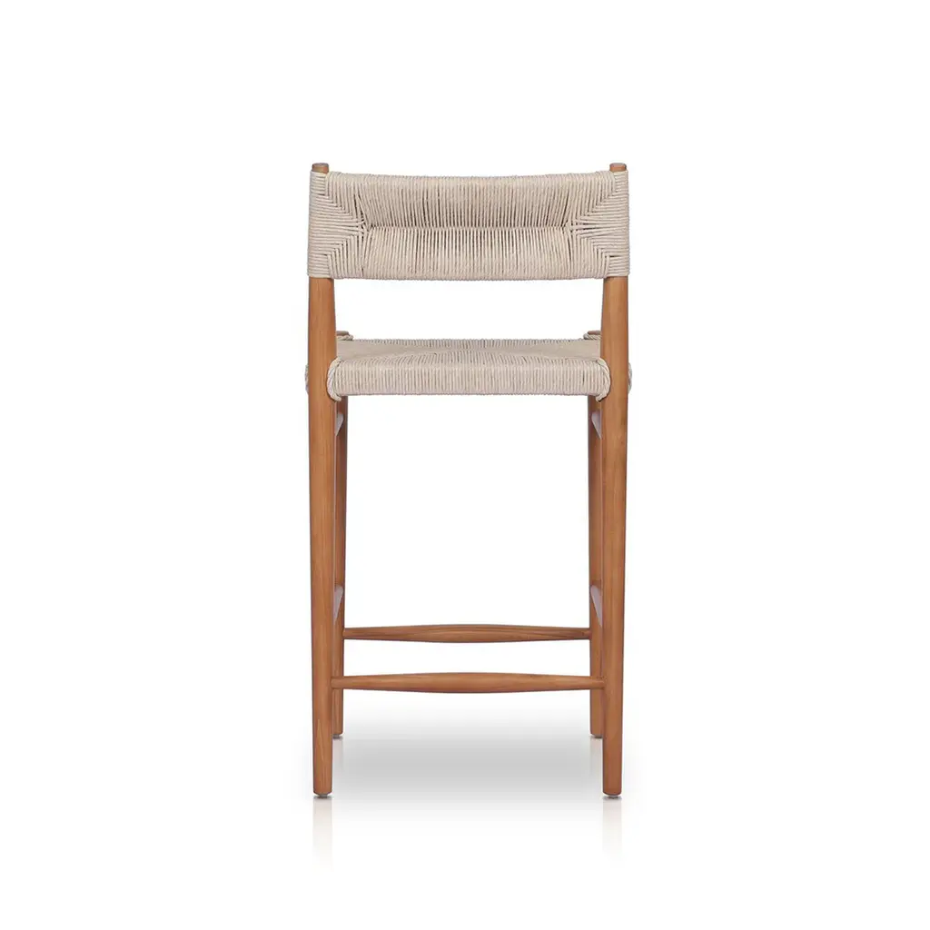 With a beautiful finish, slim, tapered teak frames this woven all-weather wicker counter stool. Cover or store indoors during inclement weather and when not in use. In Stock Early January 2026 Ships In 10-14 Business Days All-weather woven wicker seat and back Natural teak frame This image is for illustrative purposes only. The colors shown are accurate within the constraints of lighting, photography, and the color accuracy of your screen.