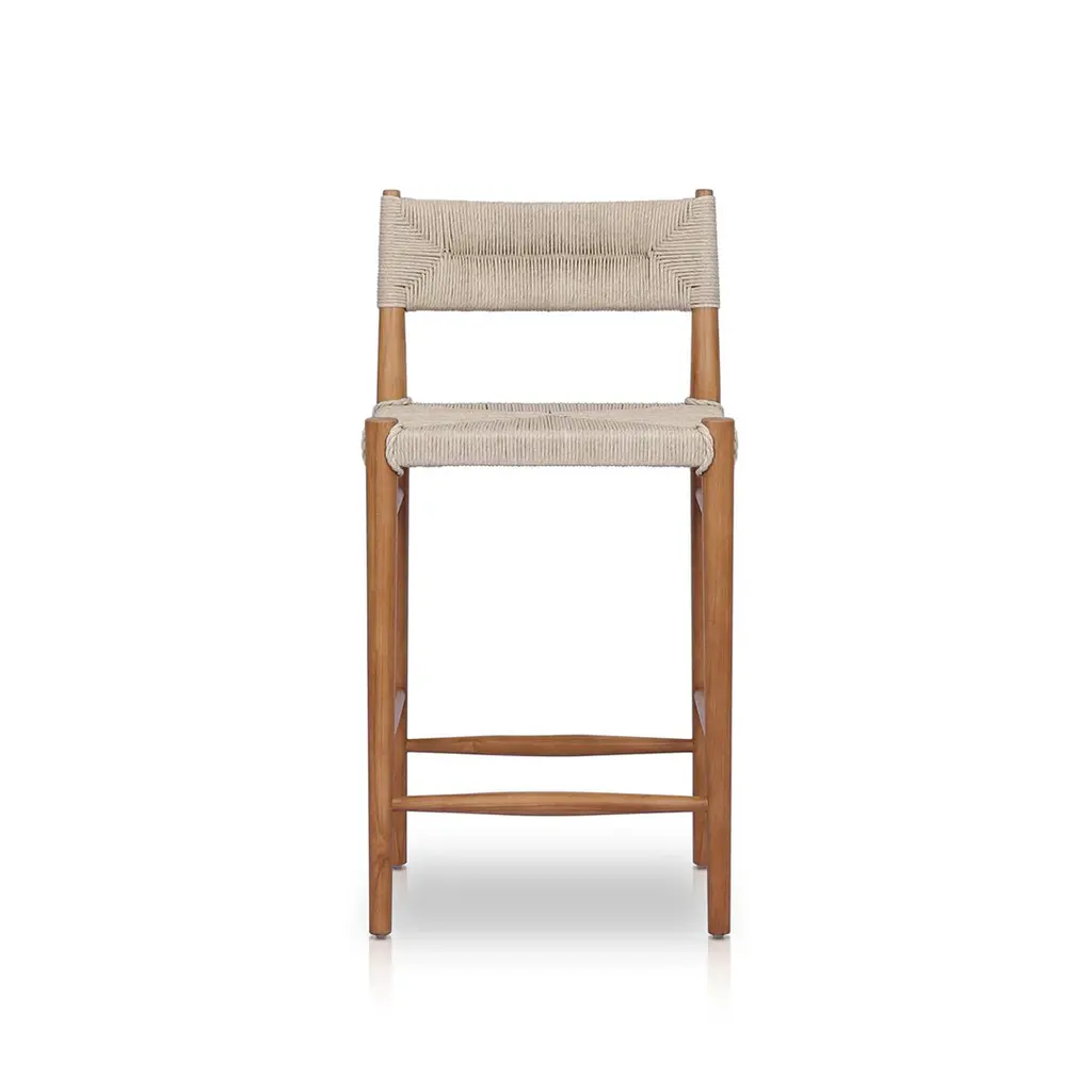 With a beautiful finish, slim, tapered teak frames this woven all-weather wicker counter stool. Cover or store indoors during inclement weather and when not in use. In Stock Early January 2026 Ships In 10-14 Business Days All-weather woven wicker seat and back Natural teak frame This image is for illustrative purposes only. The colors shown are accurate within the constraints of lighting, photography, and the color accuracy of your screen.