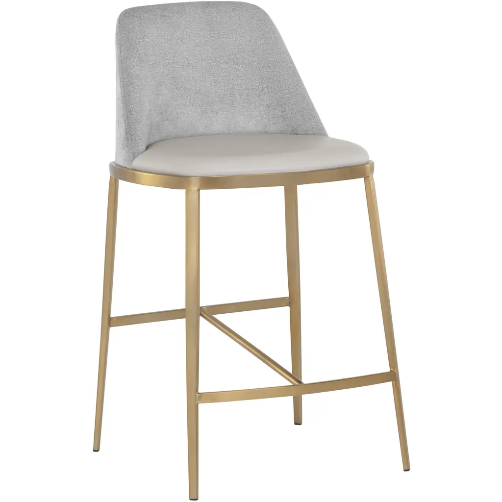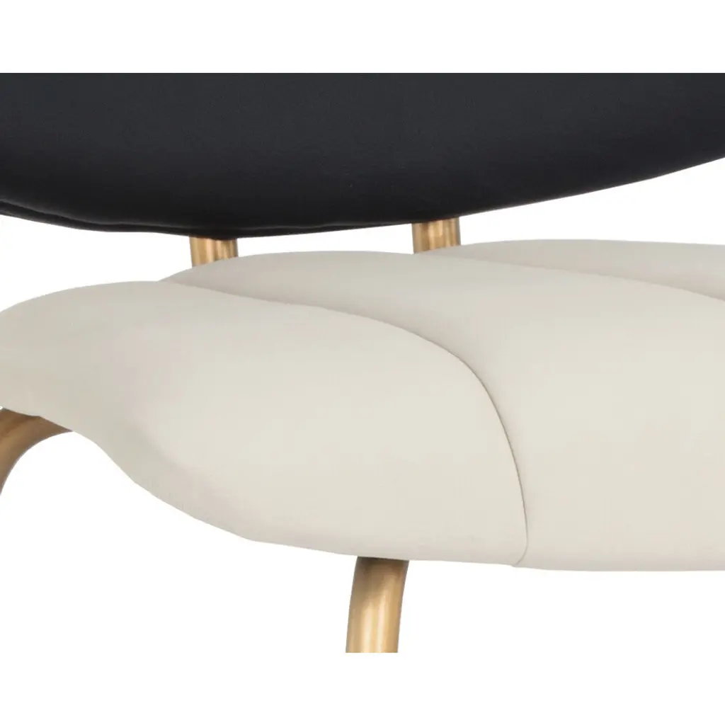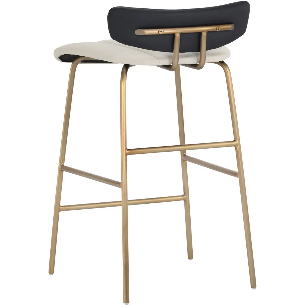 A chic counter stool featuring a channel tufted seat in dillon cream faux leather and a low profile seatback in contrasting dillon black faux leather. A brushed gold stainless steel frame completes this feminine look. Suitable for various dining, kitchen and bar spaces of all sizes. Handle With Care: This design has been crafted with faux leather. Faux leather is manufactured to reflect the natural characteristics of leather as such, colour variations, markings, wrinkles, grooves, and light scratches are appreciated characteristics. No two pieces will be alike. Visit our Product Care page for more information on how to ensure the lasting beauty of this piece.