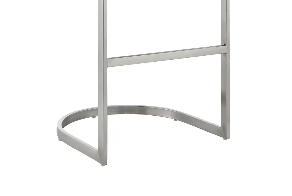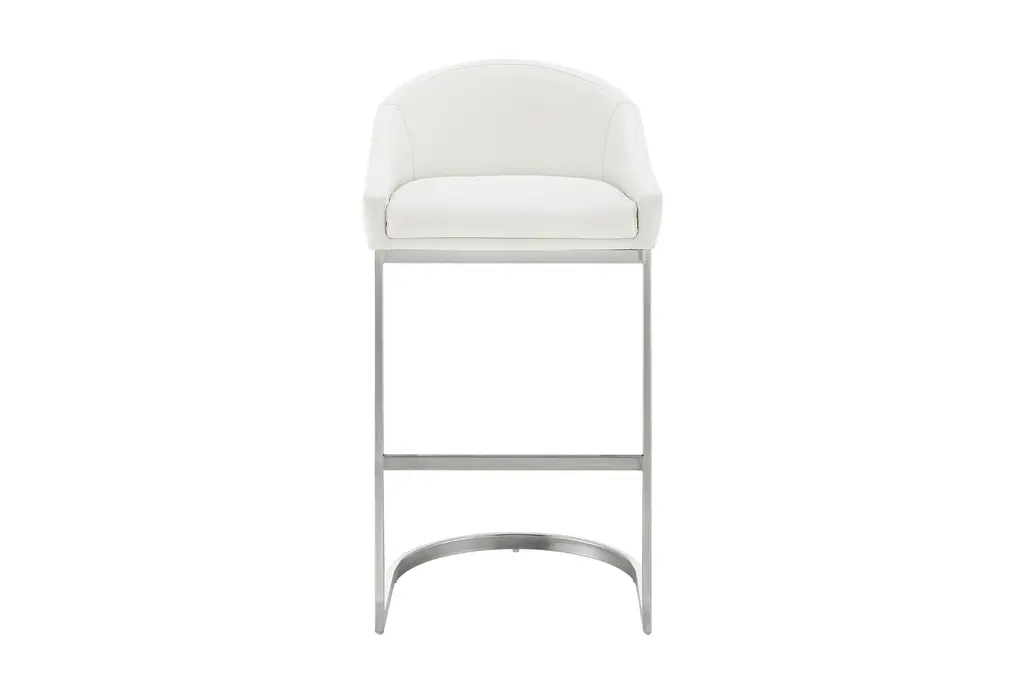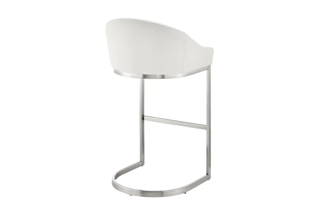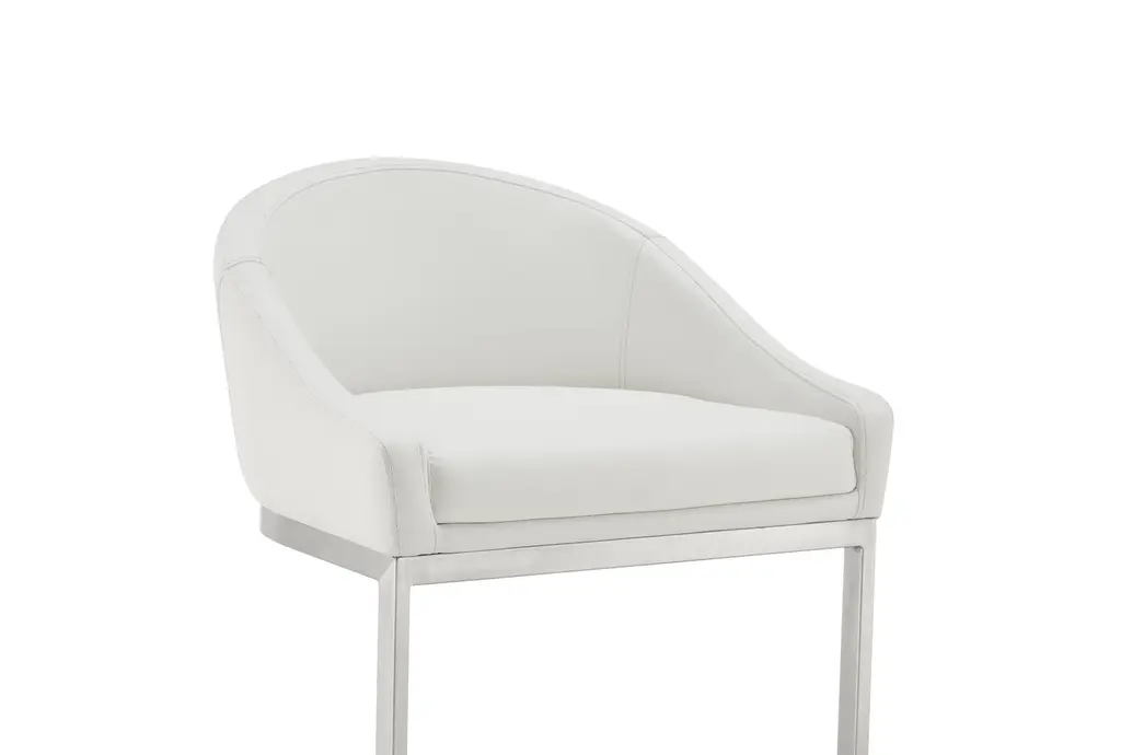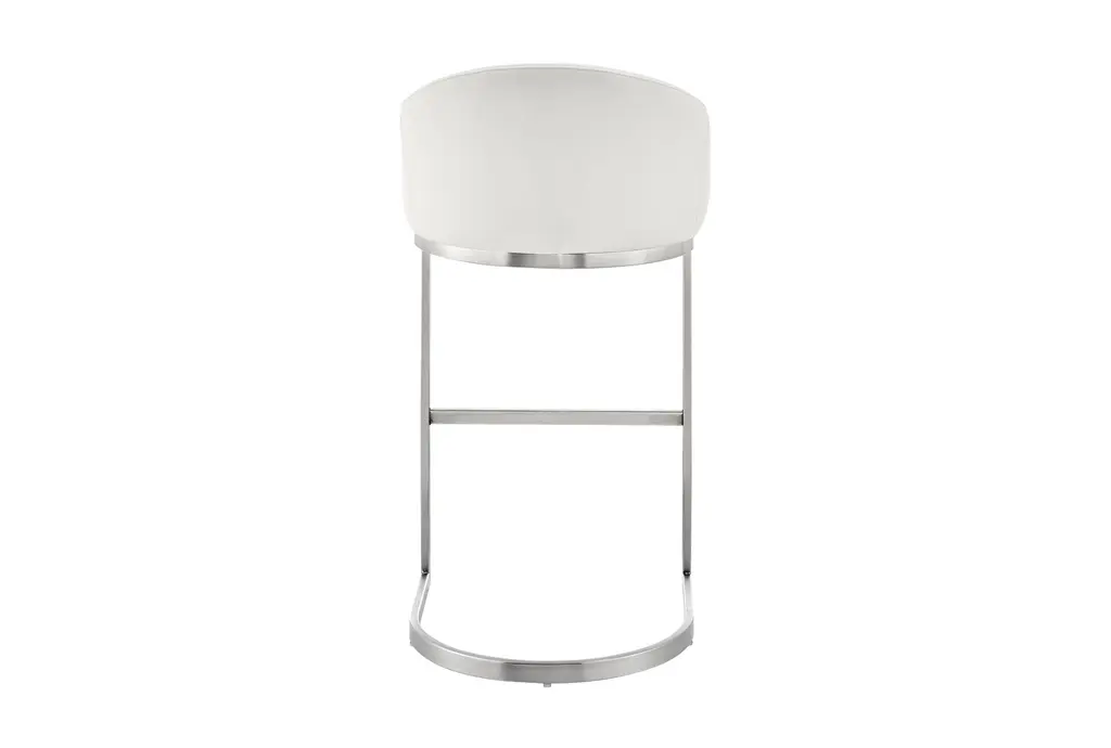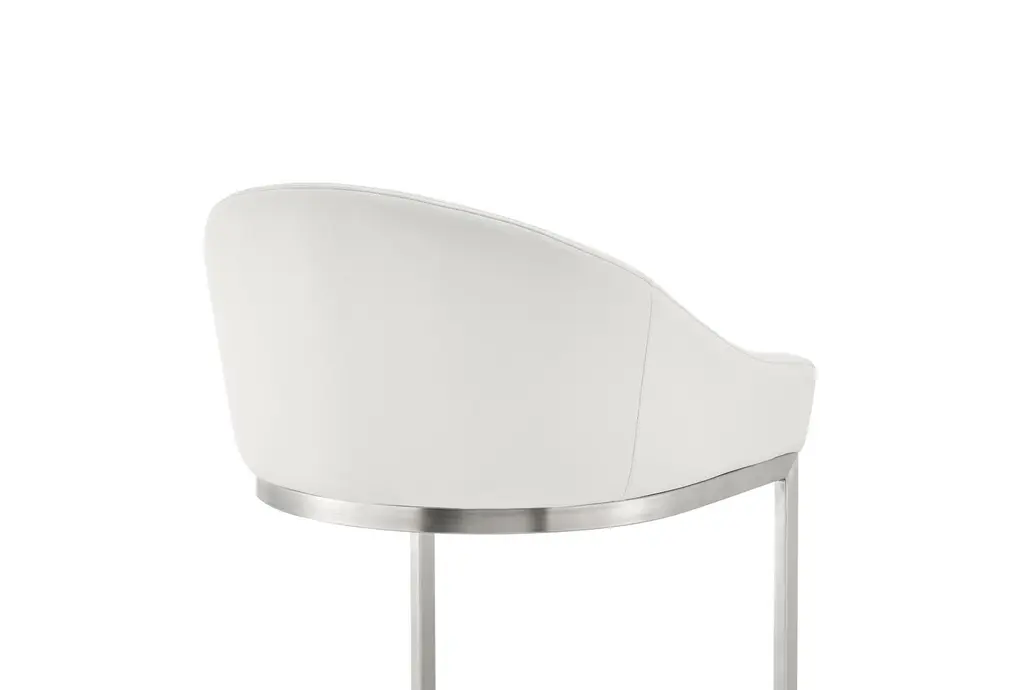 The Lorian 26" Counter Height Stool in brushed stainless steel metal with white faux leather is a perfect addition to your dining room. Its modern design and quality materials provide both durability and style. The stool's tall structure offers comfortable seating for your counter-height tables.