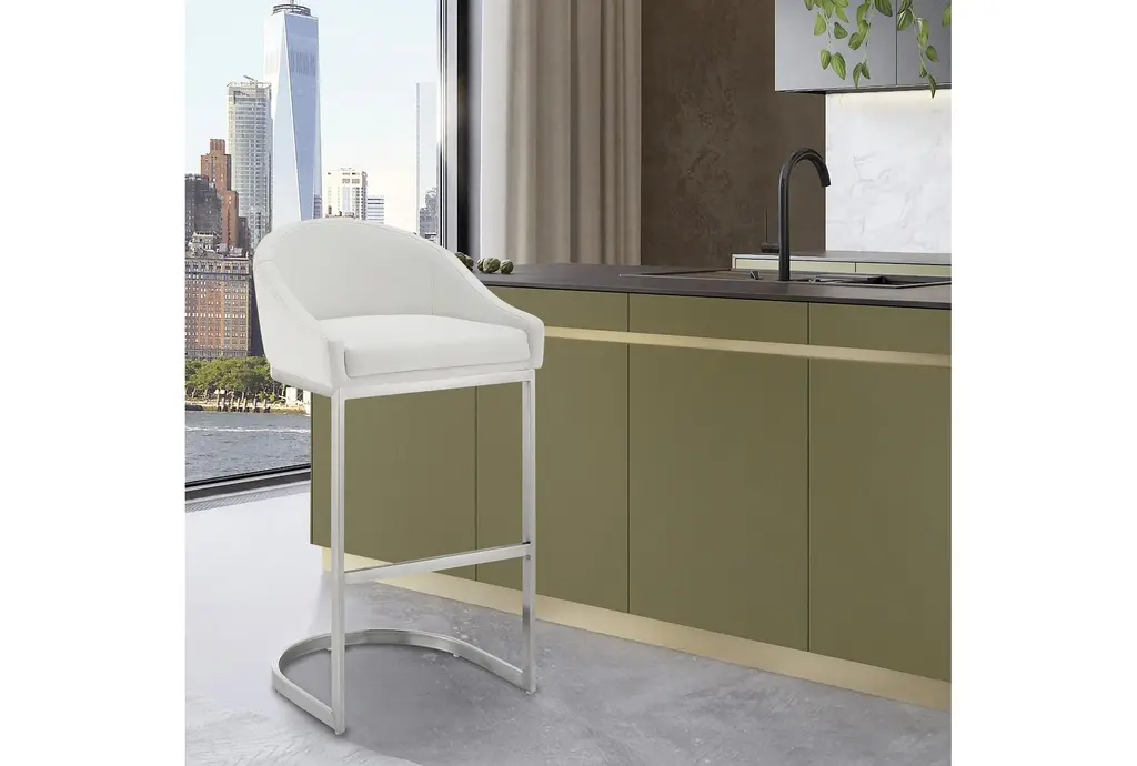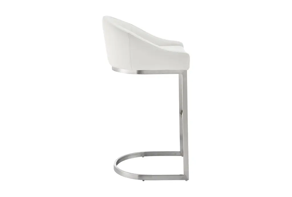 Lorian 26" Counter Height Stool In Brushed Stainless Steel Metal With White Faux Leather