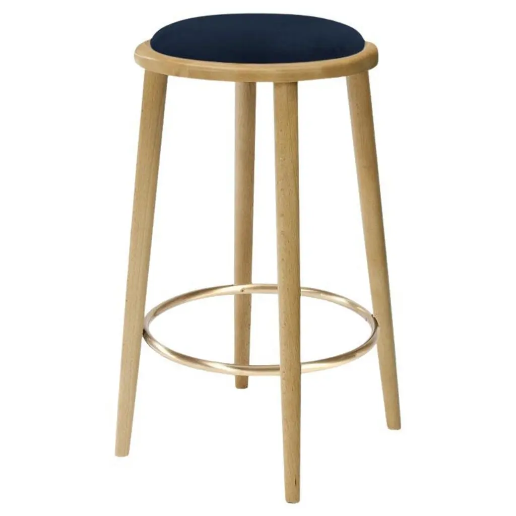 The Luc bar + counter stool with their Inviting curves and a comfortable seating. This chair is made of solid wood structure, natural rattan back and soft comfortable velvet upholstery.Luc Bar and Luc counter stool are available in a number of different materials, finishes and combinations.MaterialStructure solid wood, seat fabricRing polished brassDimensionsAvailable in 2 sizesBar Chair : W 17” x D 17” x H 31” - Seat height 31”Counter Chair : W 17” x D 17” x H 27” - Seat height 27”Pictured inParis green seat, Beech structure and polished brass ring.
