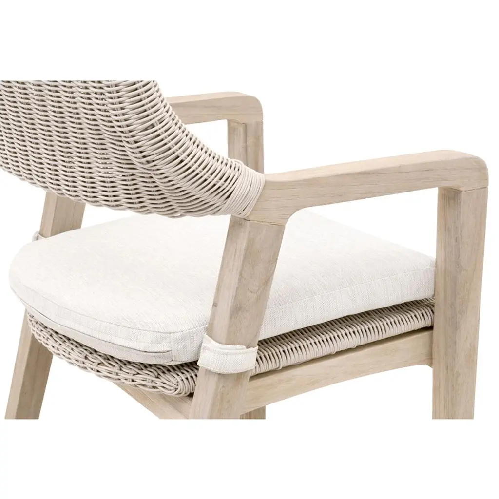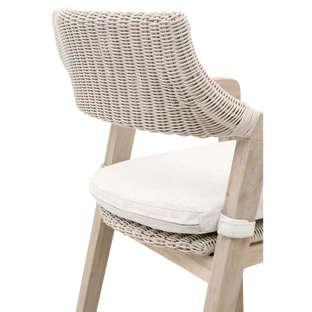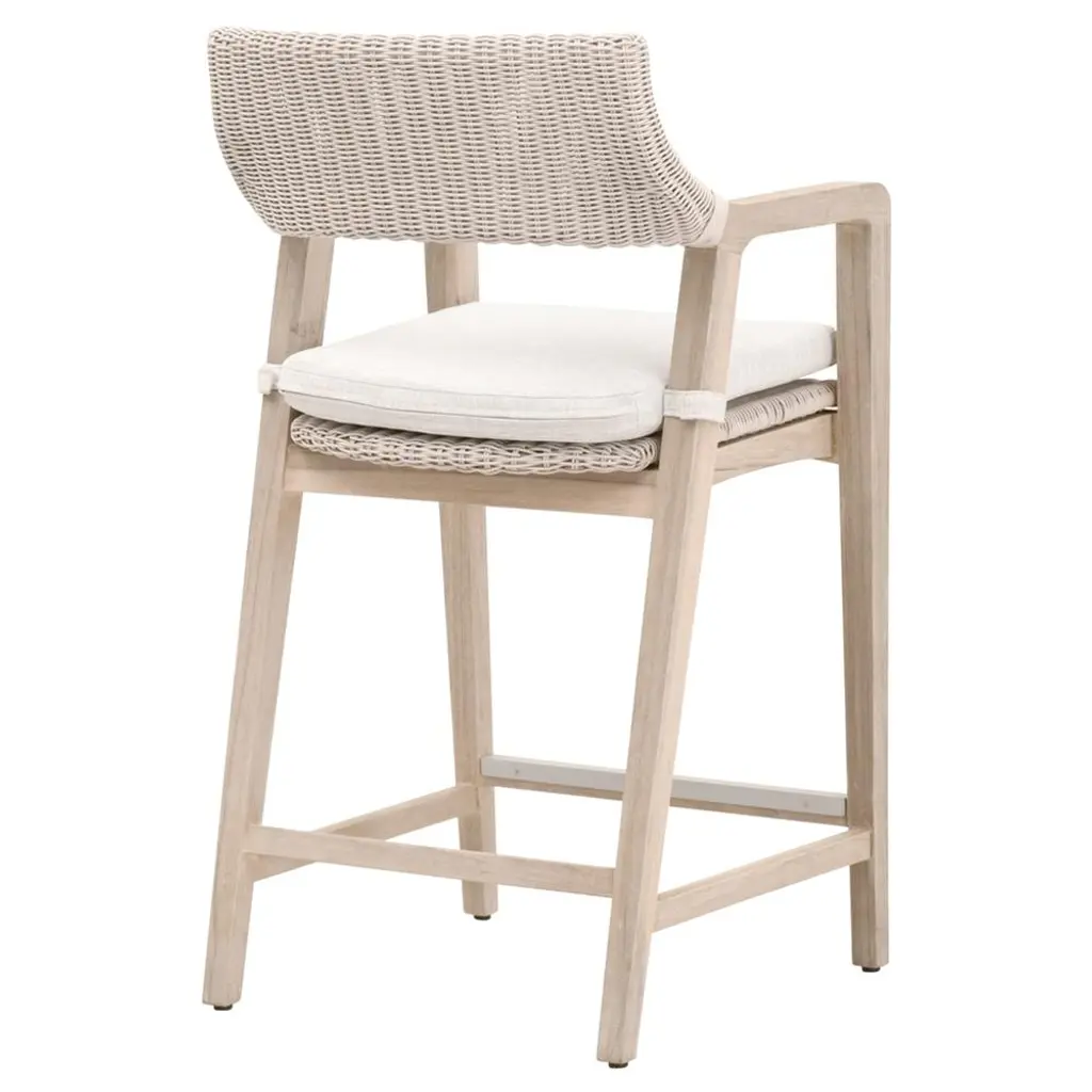 Lucile Coastal Beach White Cushion Woven Wicker Grey Teak Outdoor Counter Stool