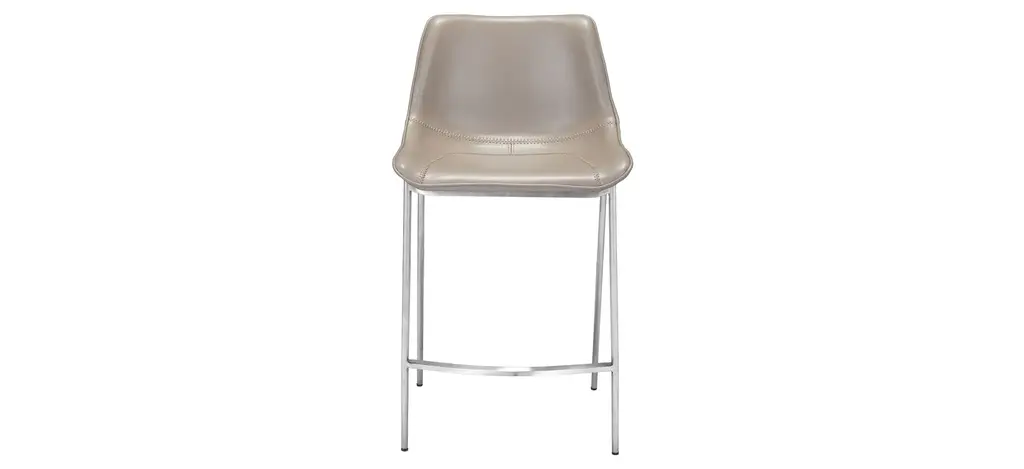 The Magnus Counter-Height Stool: set of 2 with its slim profile pulls up perfectly to the bar. Its super comfortable curved seat is covered in faux leather with dramatic stitching.