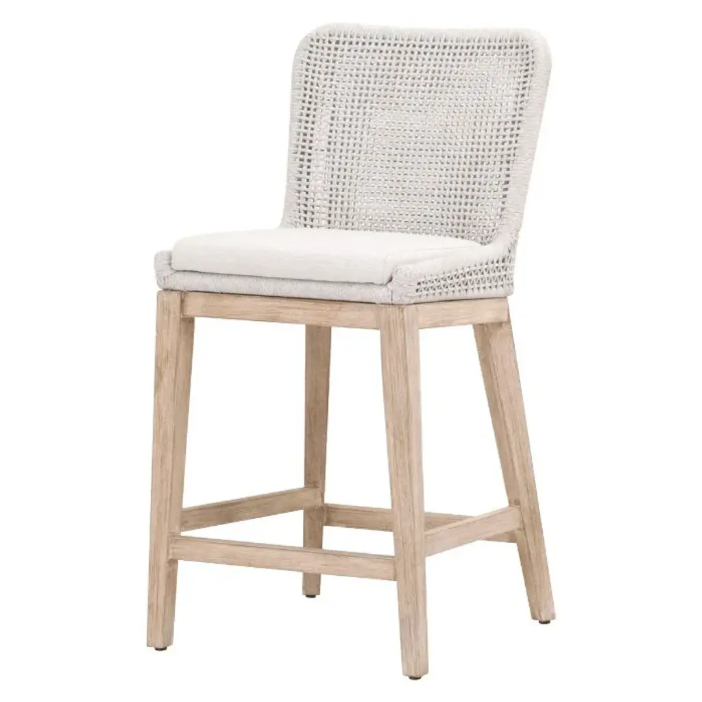 Comfort and style are achieved in this counter stool. Boasting an organic vibe + coastal design with it's white woven rope detail and olefin performance fabric. Feature in a beach bungalow or lake house.