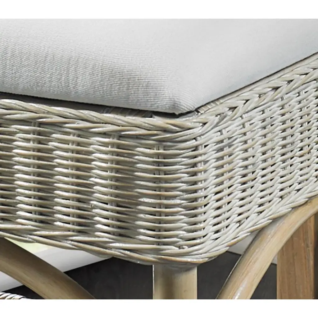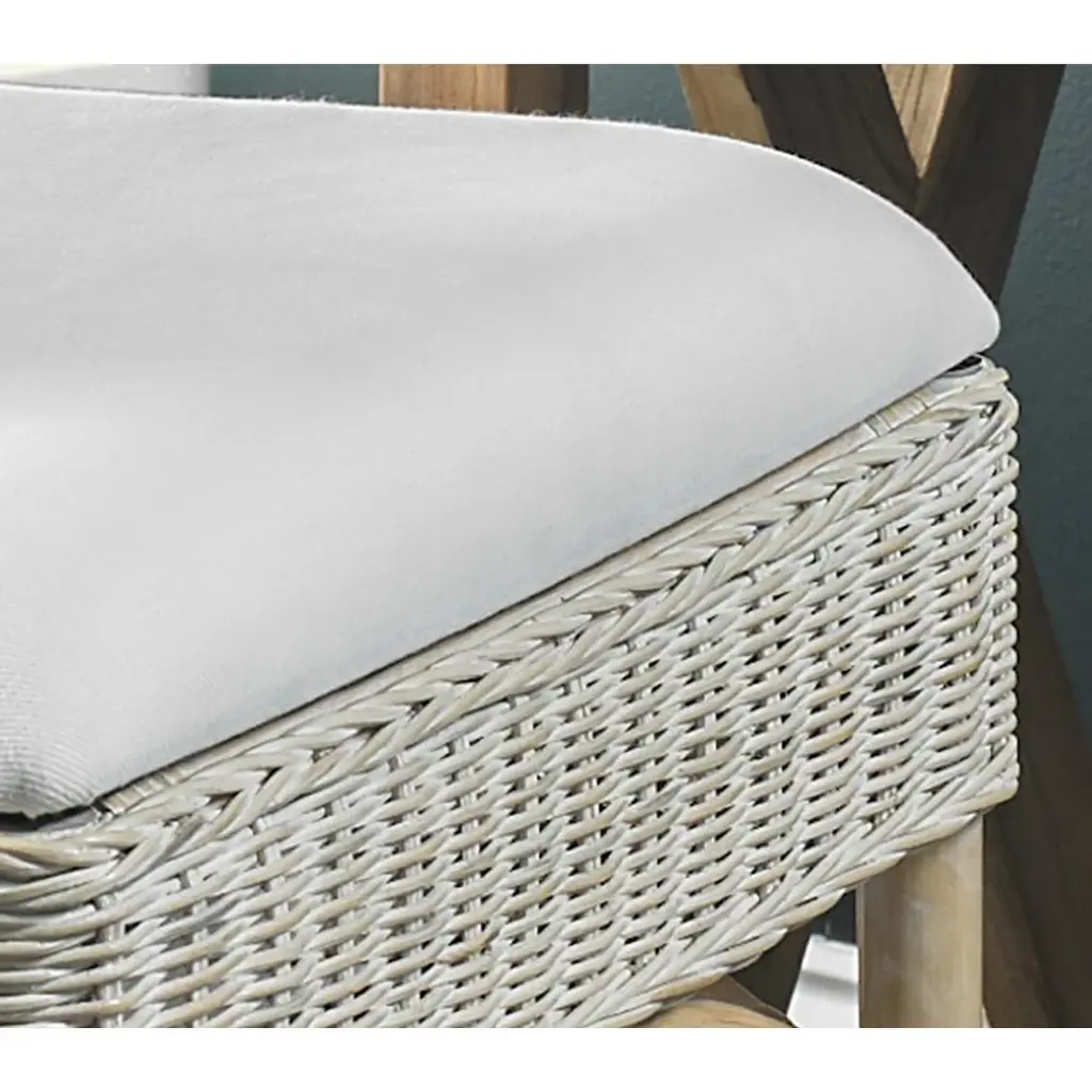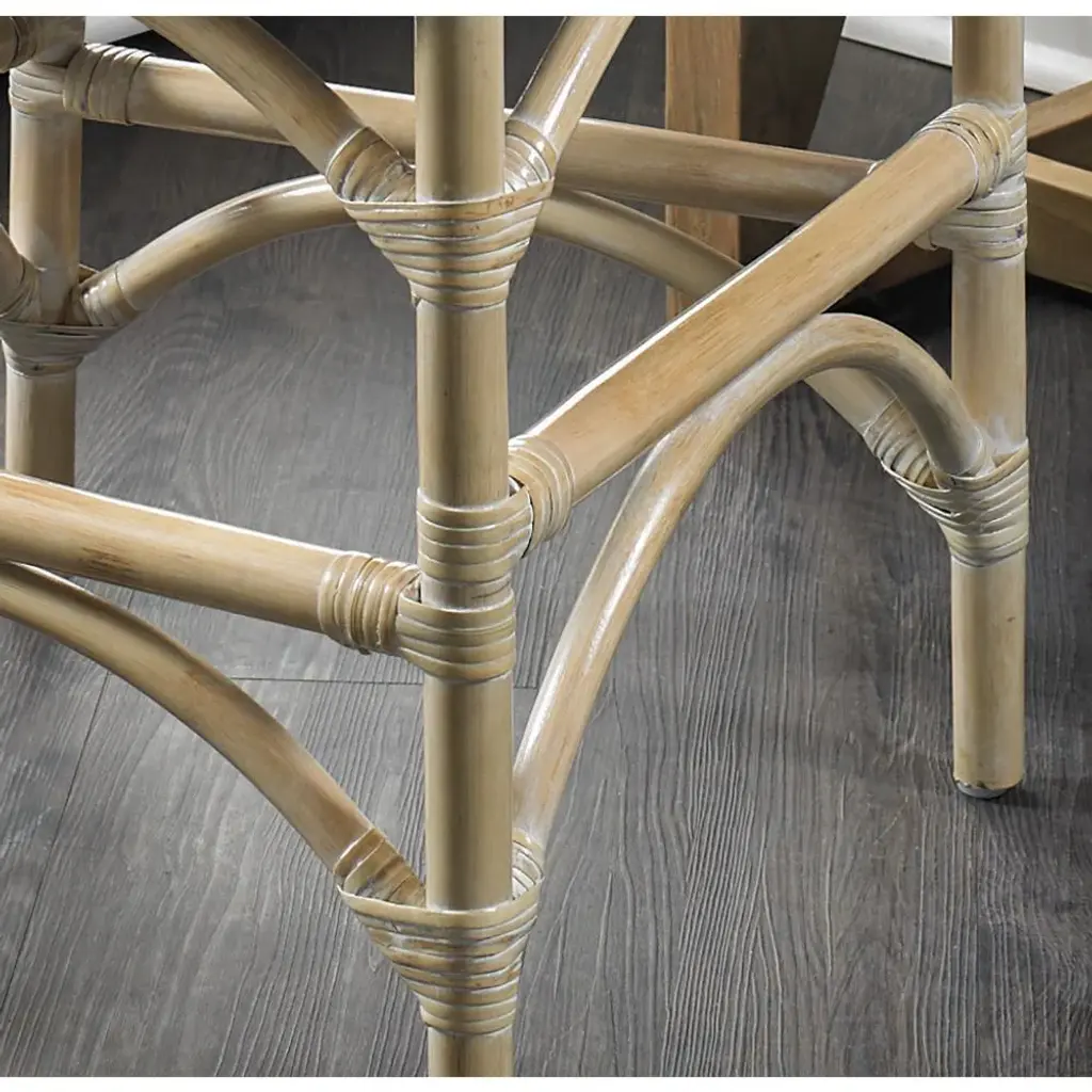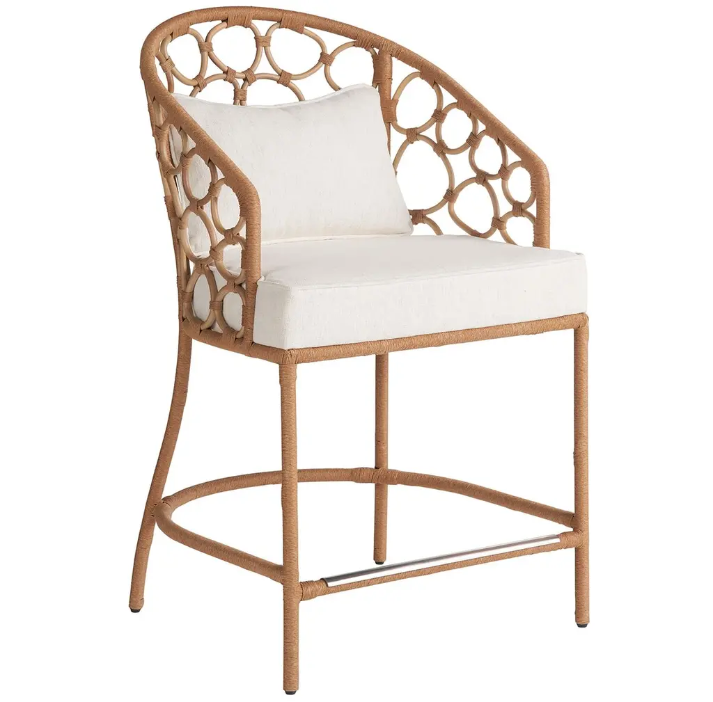 This whitewash woven rattan counter stool with seat cushion offers relaxed comfort as well as style versatility and a welcomed touch of earthy texture.