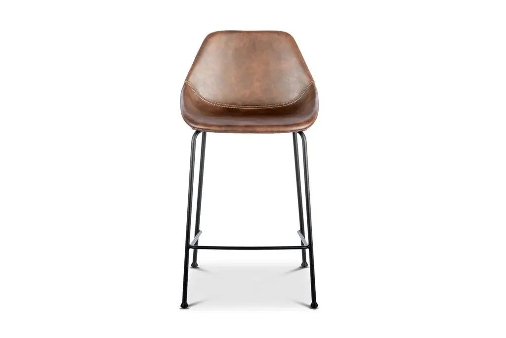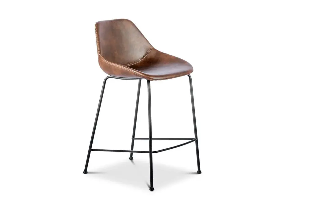 A rich, vintage leatherette combined with a contoured seat creates the contemporary silhouette of the Marion Counter Stool. The matte black steel base highlights the design for a stylish finish.