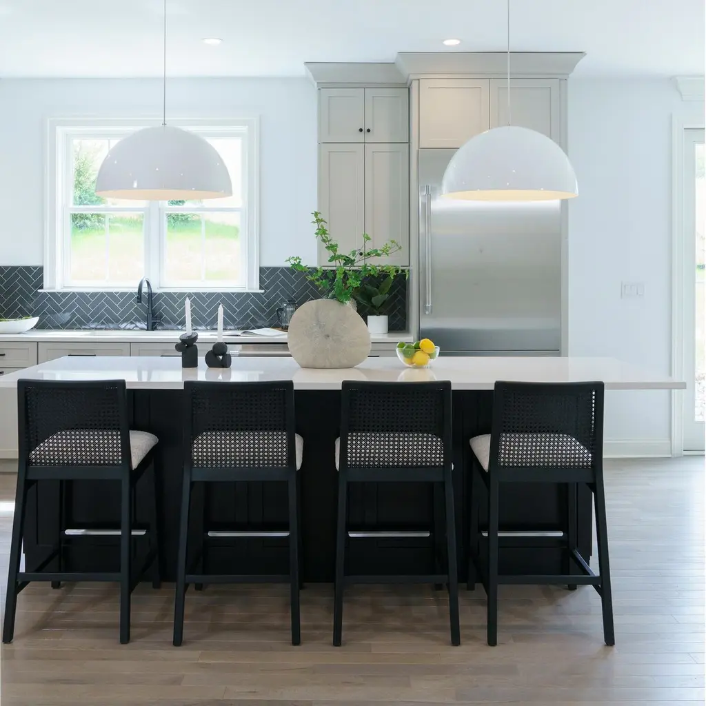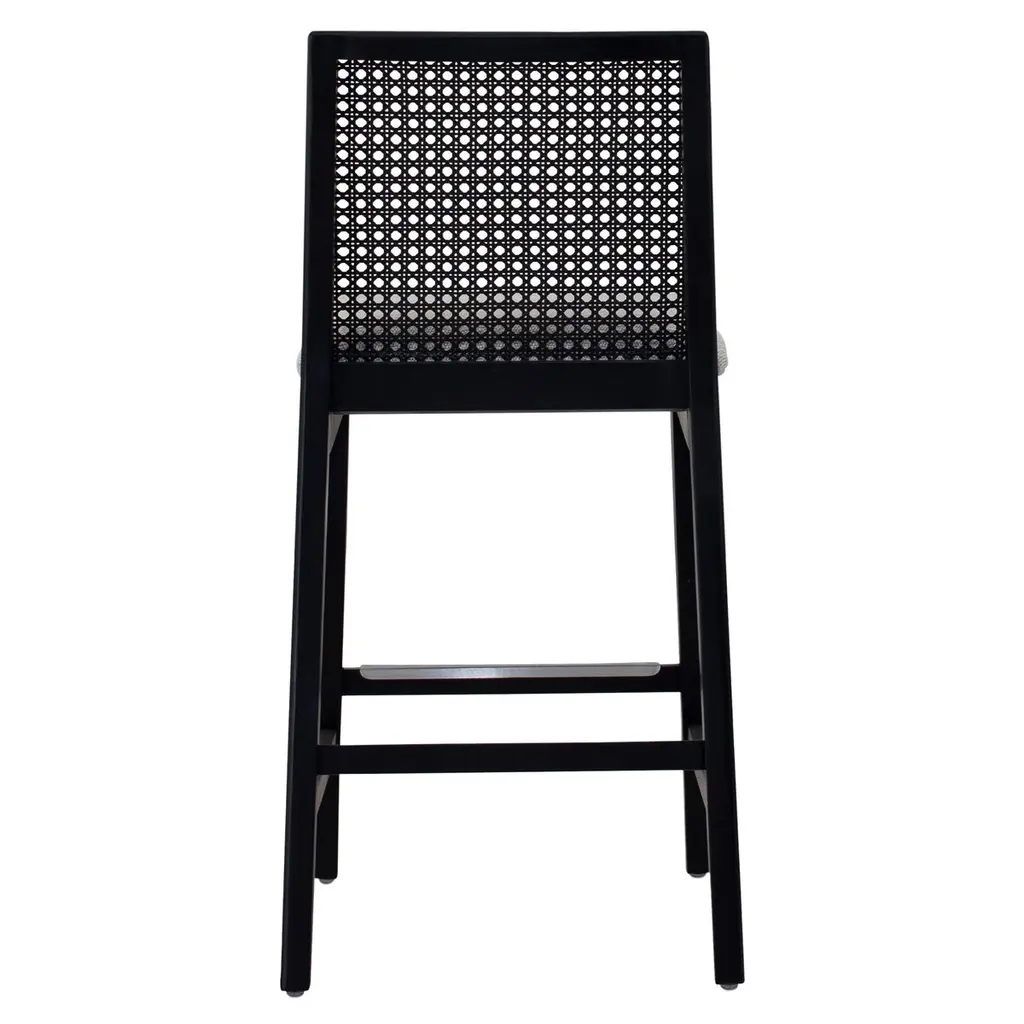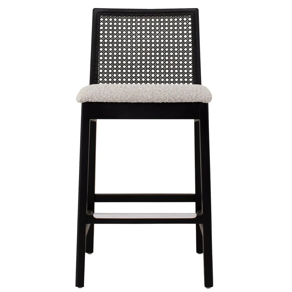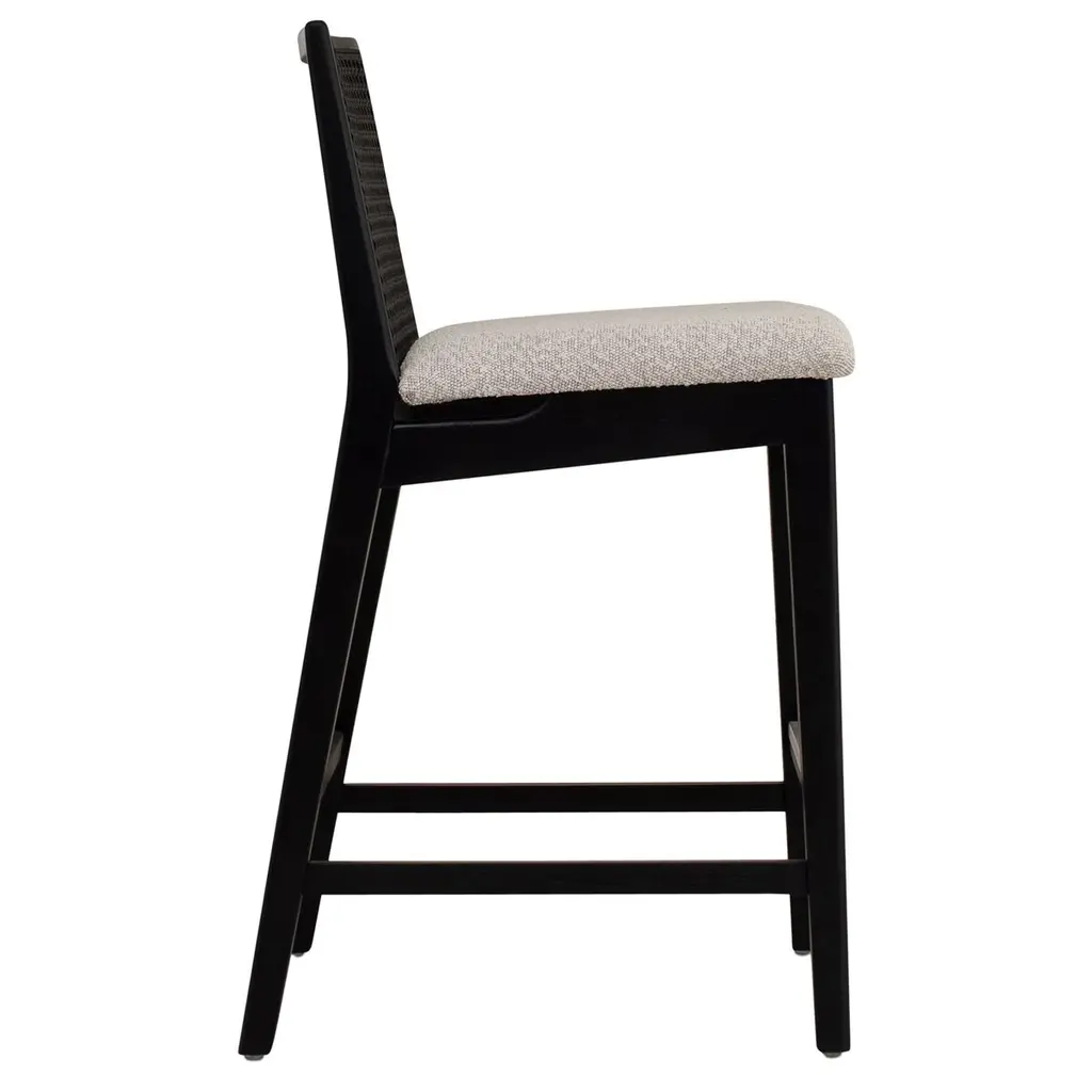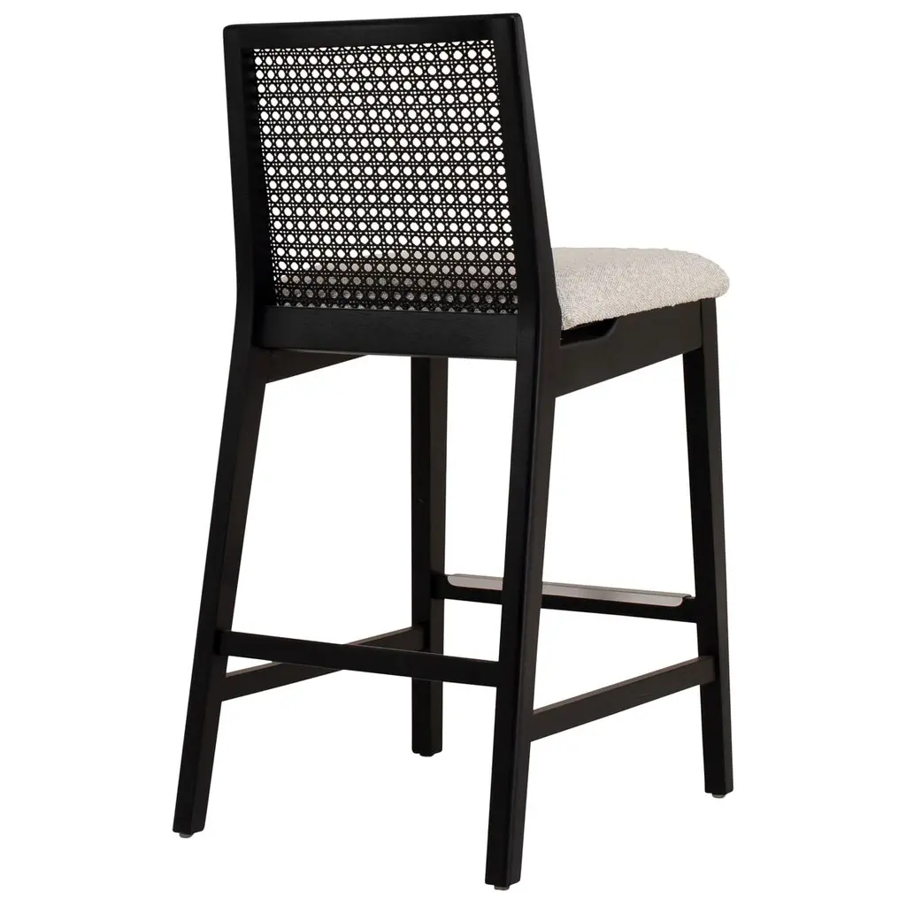 This counter stool's cane back panel and woven upholstery provide a textural contrast to the sleek frame, which is crafted of durable (and beautiful) tauari wood. The fiber-wrapped high-density foam seat cushioning ensures long-lasting comfort.