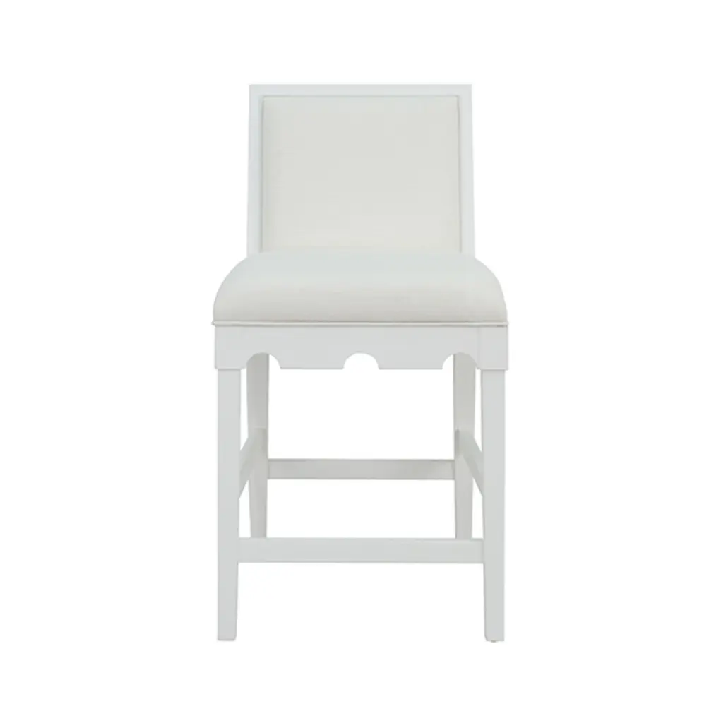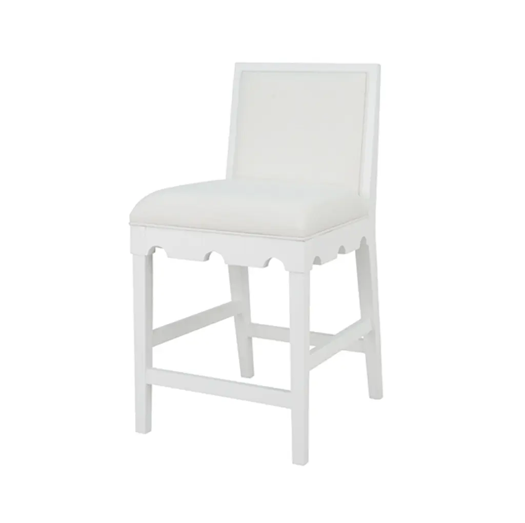 Matthew Izzo Home - Lanister Matte White Lacquer Square Back Counter Stool With White Performance Linen Back & Seat