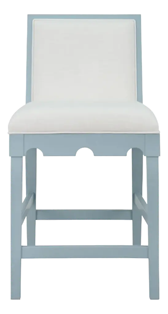 New item. Not vintage. Add a natural look to your kitchen with the Lanister Matte White Lacquer Square Back Counter Stool! The decorative apron and crisp white finish add style, while the performance linen upholstery ensures comfort. 40.5" H x 20" W x 22.25" D Seat Height: 26" Width:19.25" Height:40.25" Depth:22.25" Also available in light blue matte lacquer and cerused oak. See separate listings. Also available in dining chair. See separate listing.