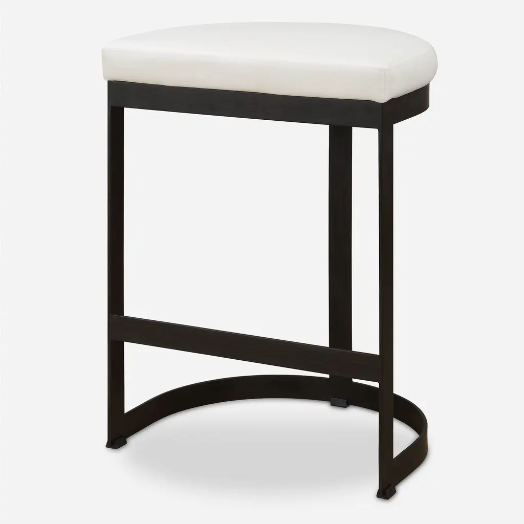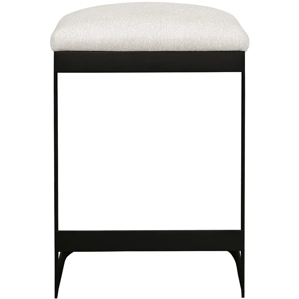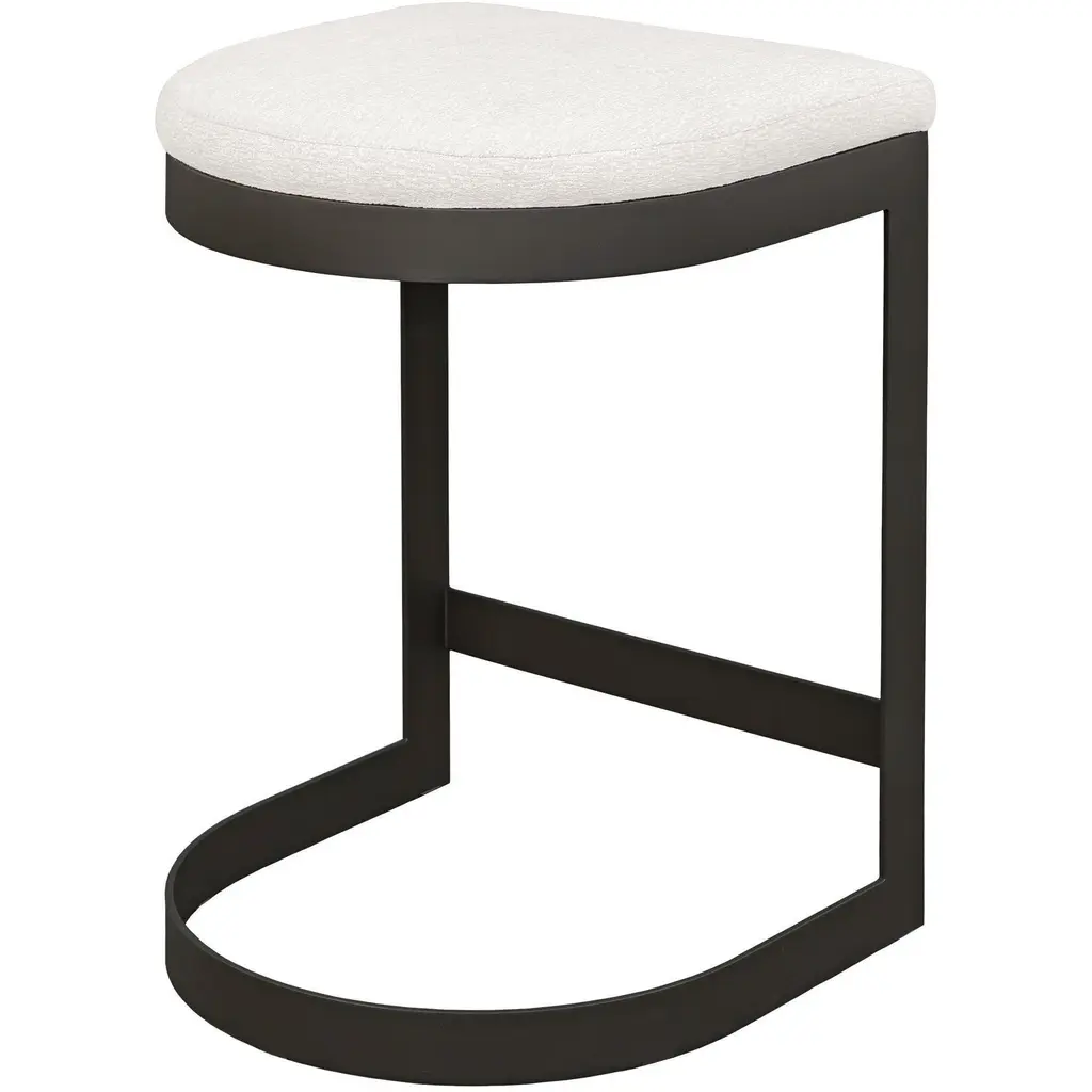 The Maude Outdoor Counter Stool Blends Industrial Style With Cozy Comfort, Featuring A Durable, Powder Coated Steel Frame In Java Black Paired With A Plush Cushion In Heavily Textured Taupe Gray Solution Dyed Acrylic Fabric.