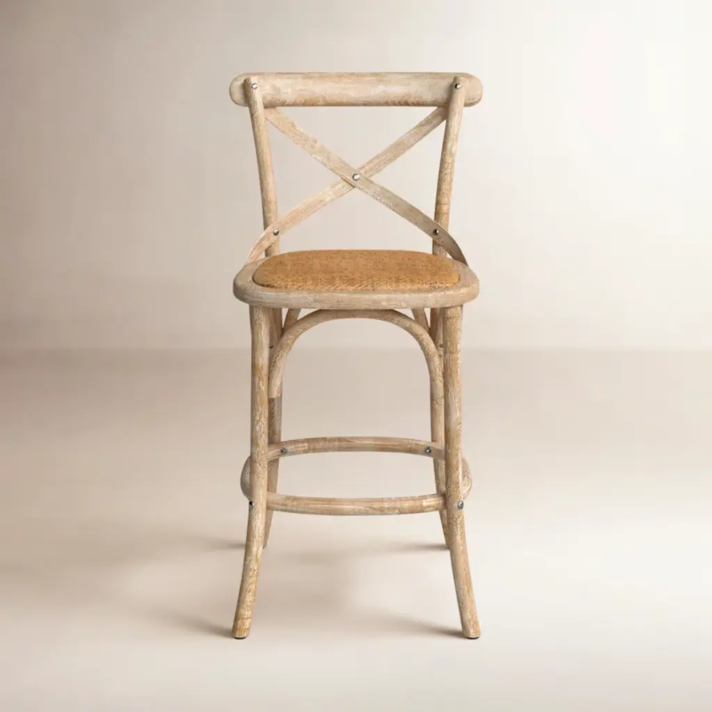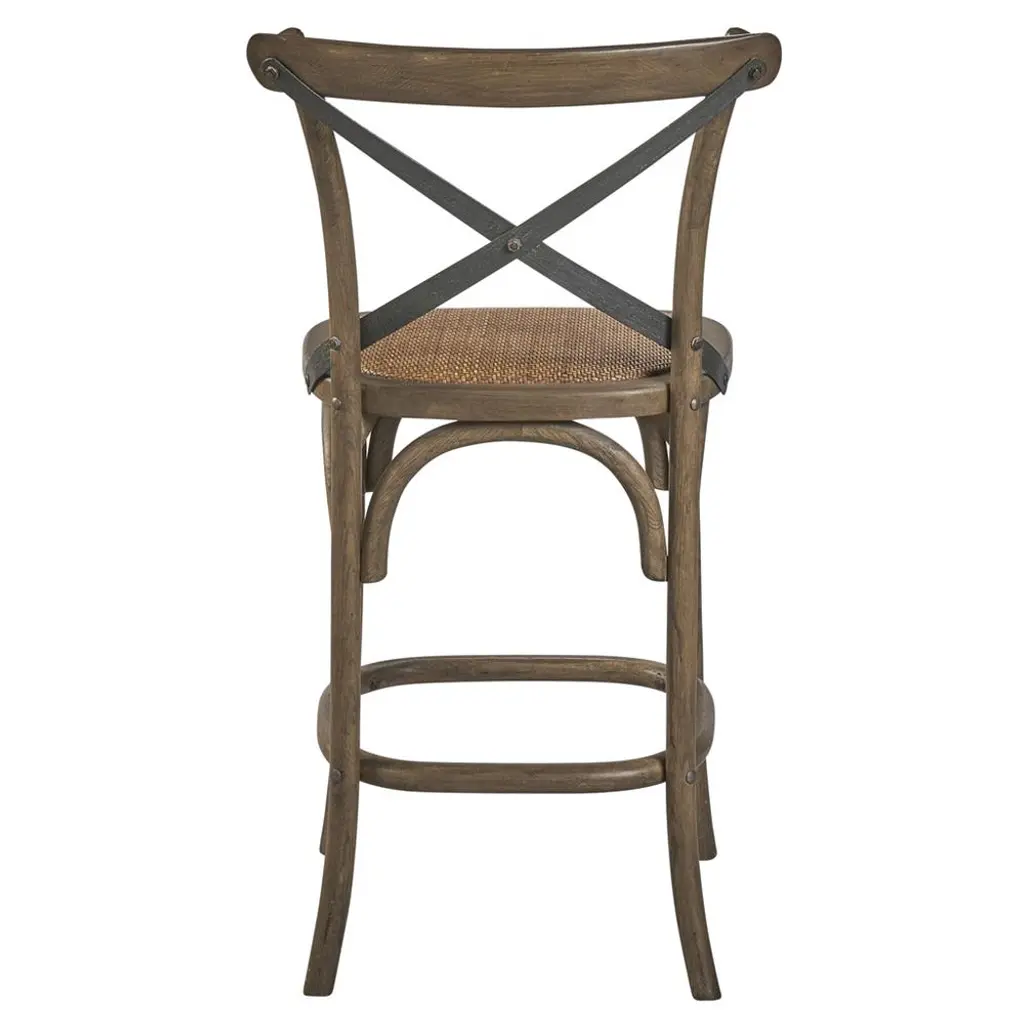 Maze Rustic Brown Seat Oak Wood Frame Grey Iron Cross Back Counter Stool