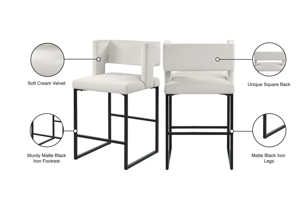 Enhance your modern kitchen or bar area with the Meleb Cream Velvet Upholstered 36" Counter Stool Set. These stools feature a soft cream velvet upholstery that adds a touch of luxury and comfort to your space. The matte black iron legs provide a sleek and sturdy base, while the unique square back design offers a stylish and contemporary look.