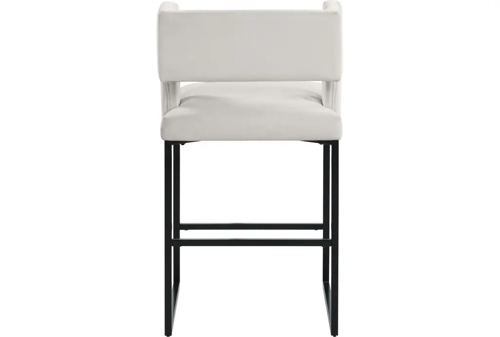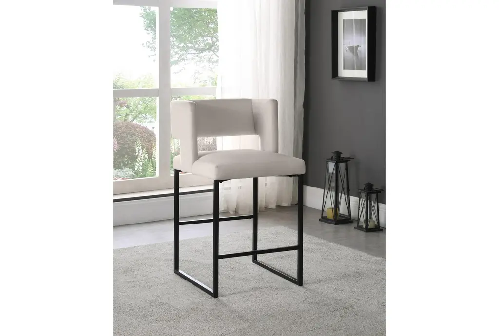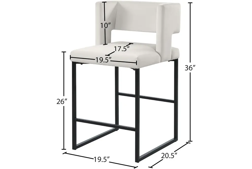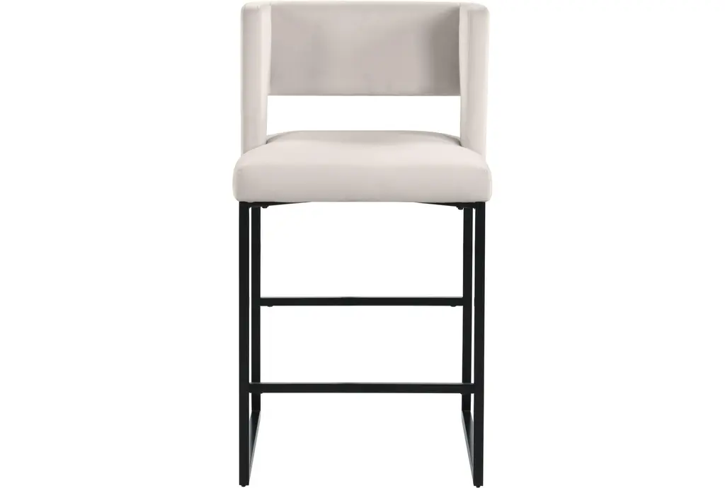 Meleb Cream Velvet Upholstered 36" Counter Height Stool With Matte Black Leg Frame Set Of 2 | Armless