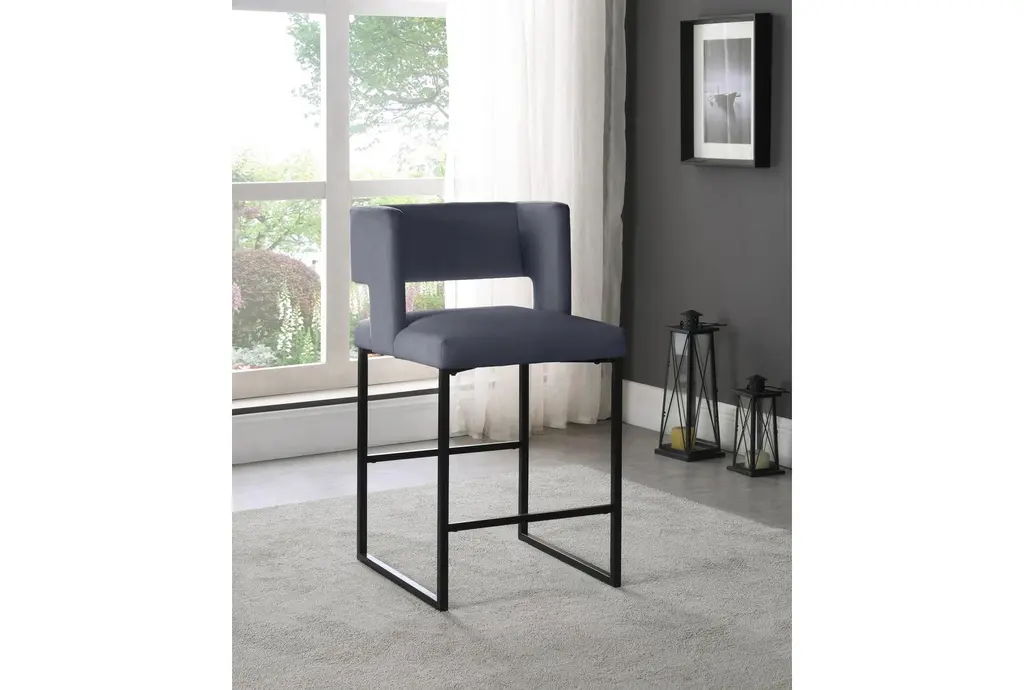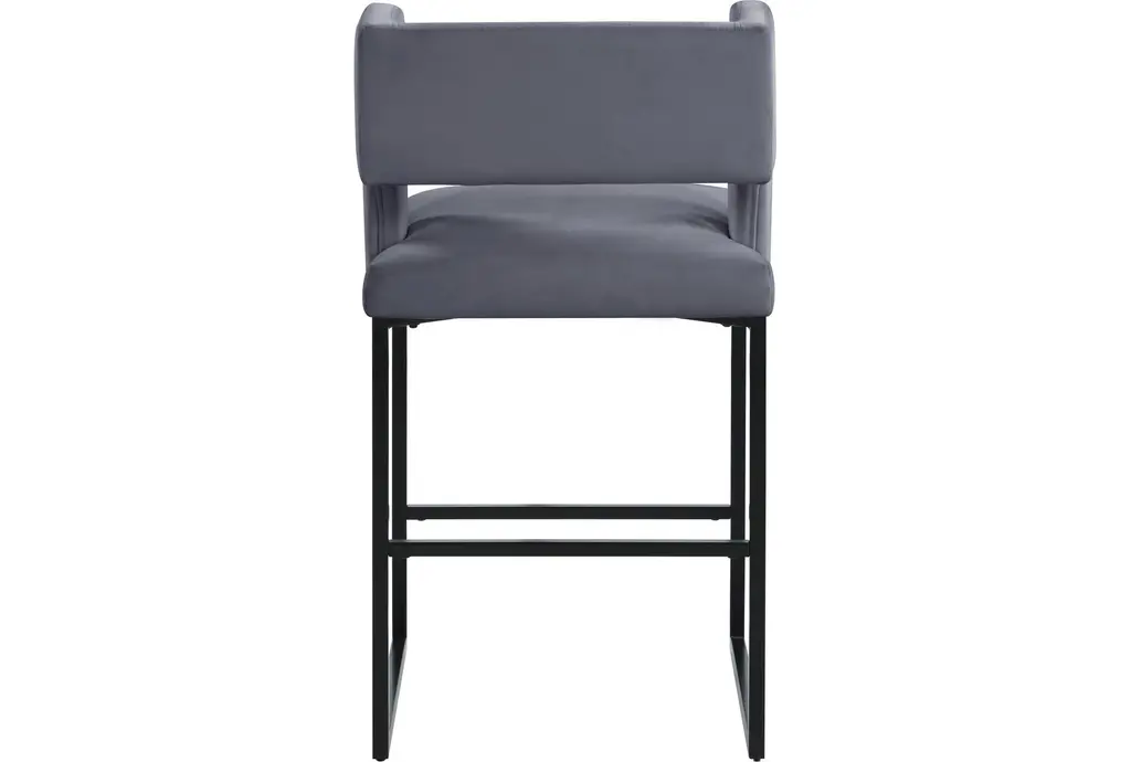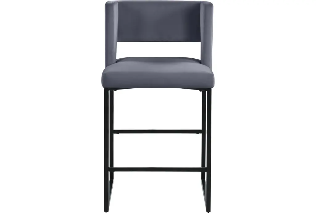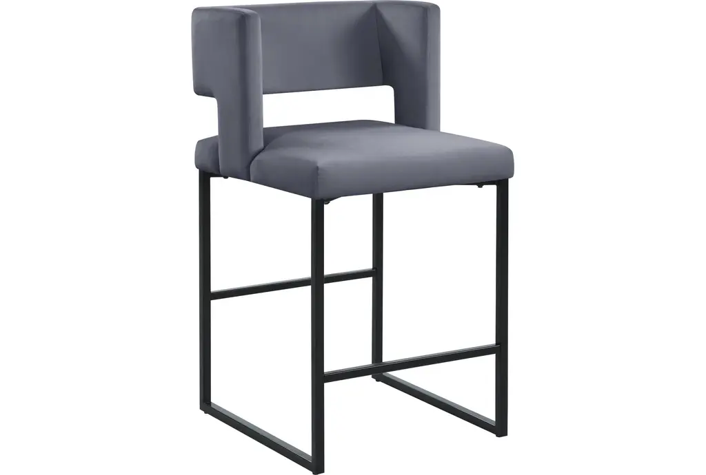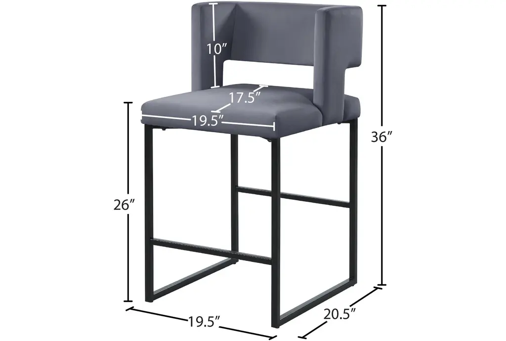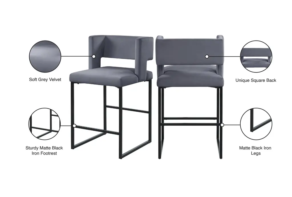 Experience comfort and style with the Meleb Grey Velvet Upholstered Counter Height Stool with Matte Black Leg Frame Set of 2. Designed in a modern aesthetic, these stools are perfect for your dining room or kitchen. The grey velvet upholstery and matte black leg frame make these stools a chic addition to any space.