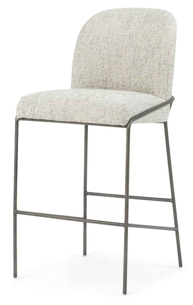Meleb Grey Velvet Upholstered 36" Counter Height Stool With Matte Black Leg Frame Set Of 2 | Armless