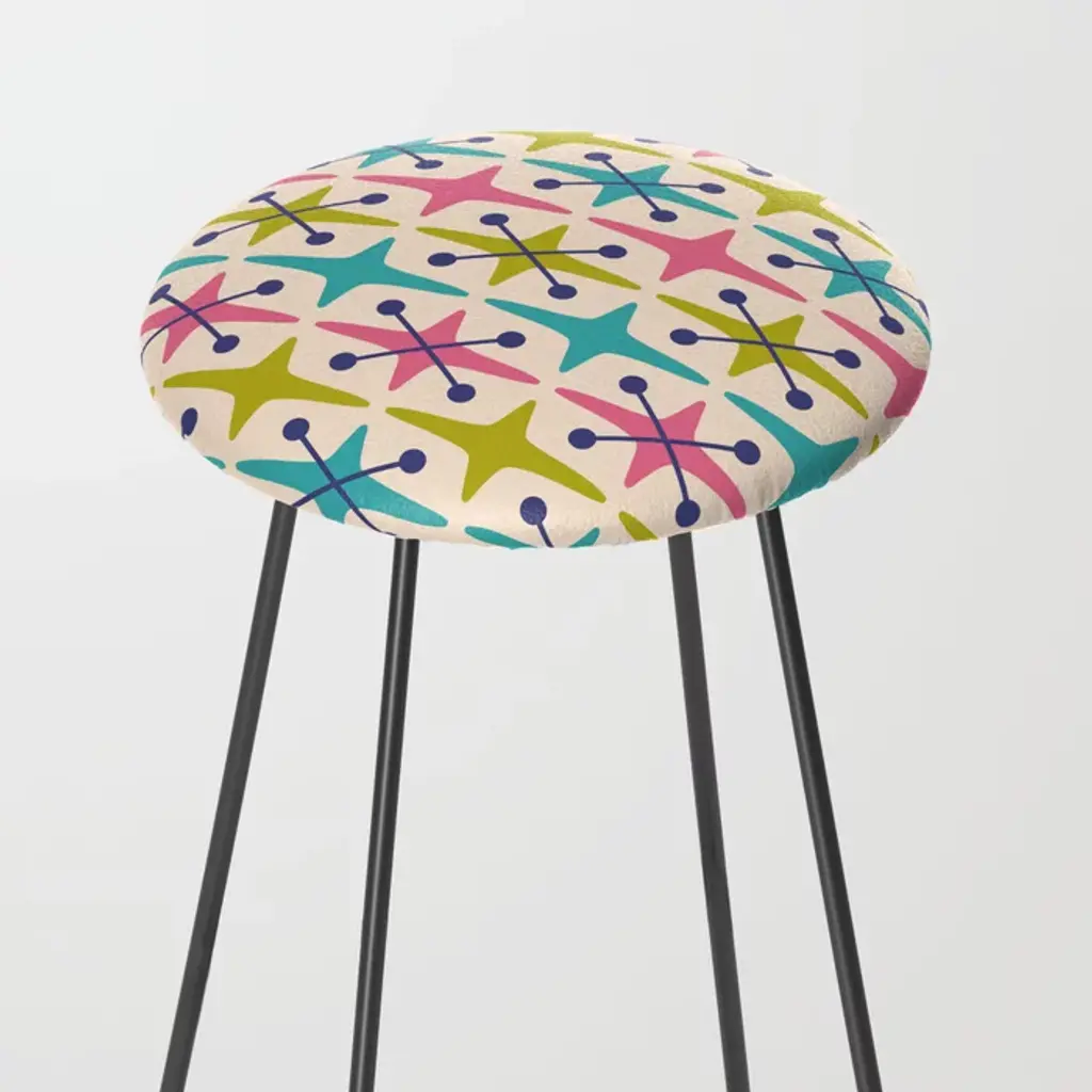 Mid Century Modern Abstract Starburst Pattern 942 Populuxe Pink Green And Blue Stool
