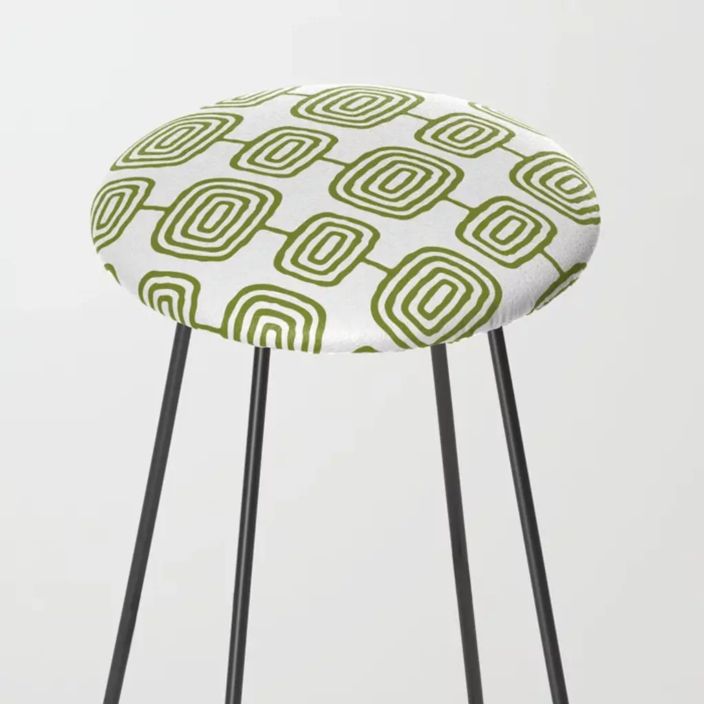 Mid Century Modern Atomic Rings Pattern Olive Green 3 Stool