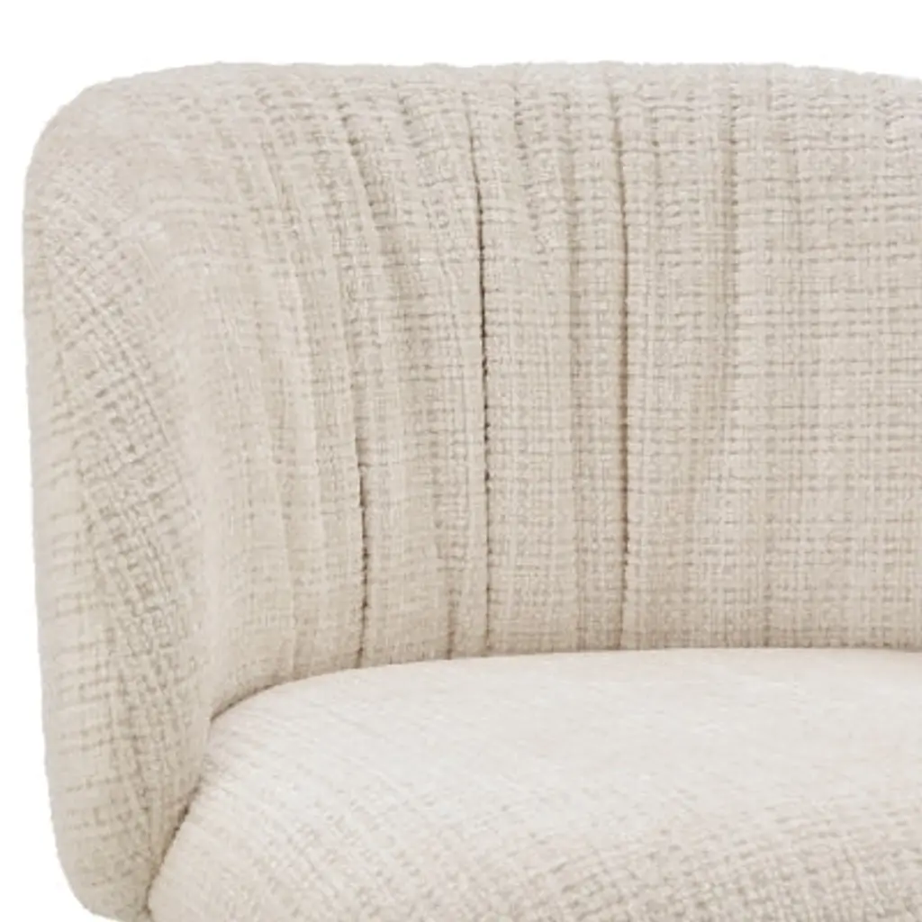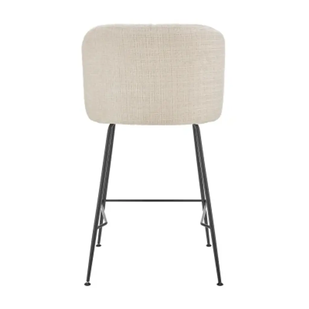 Relax and entertain in style with this fashionable counter seating. Standing at 36" high, it highlights plush chenille fabric and a high-density foam cushion for comfort. The barrel profile provides supportive backrest, while the foot stretcher and powder-coated steel frame are sturdy and complete its charming disposition. Plastic glides with steel cover are included for stability and floor protection.