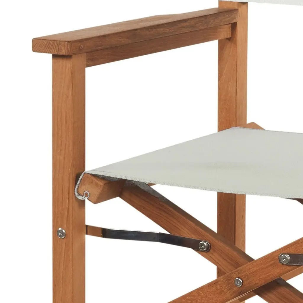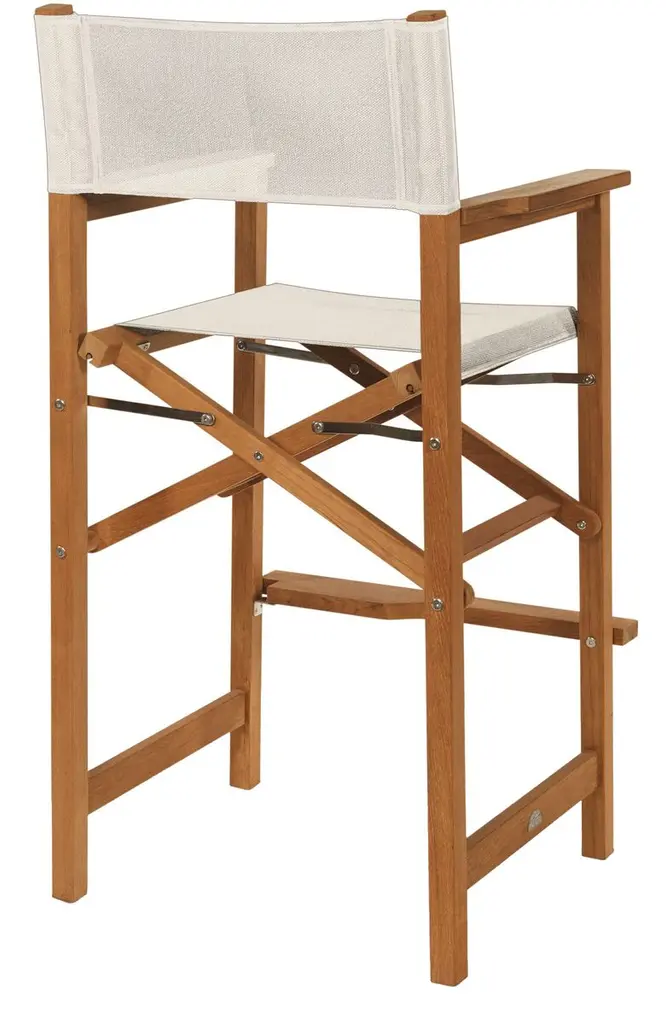The frame of this director's chair is crafted of sustainably sourced plantation teak, which resists moisture, warping, and cracking. (It even repels termites!) The seat and back are made of weather-resistant texteline, which provides an ideal balance of support and give. The chair is lightweight and foldable for easy storage.