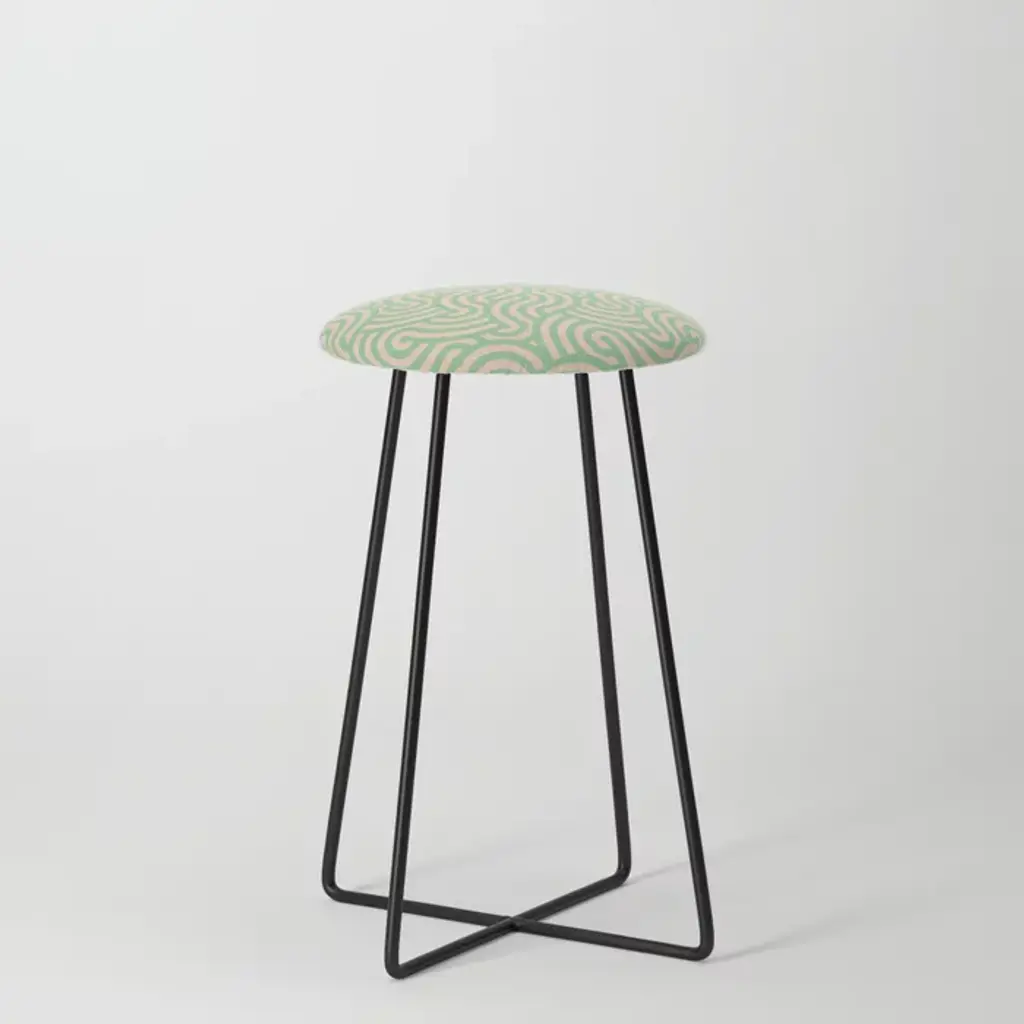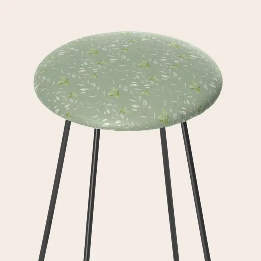 Mint Green Watercolor Hand Painted Floral Leaves Stool
