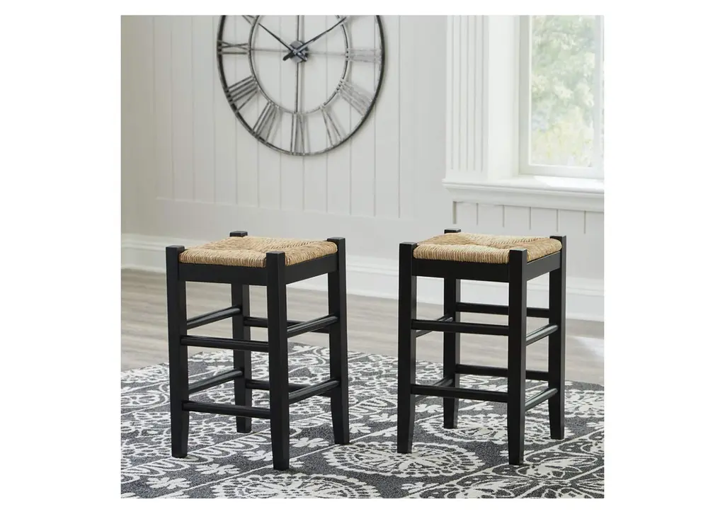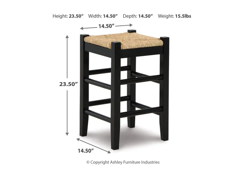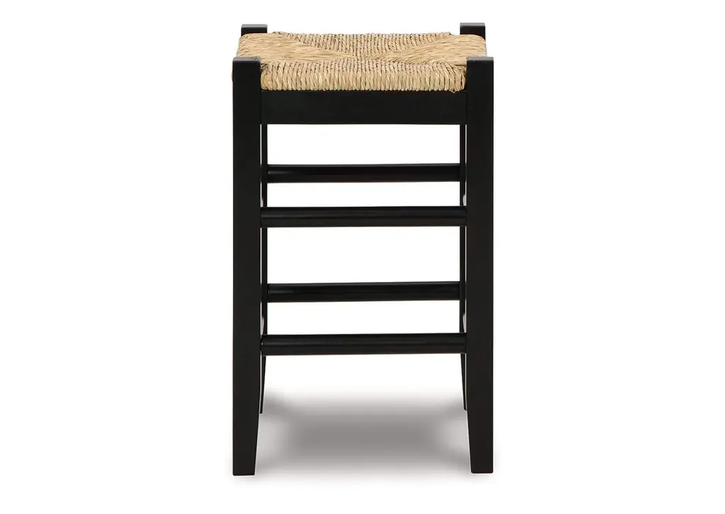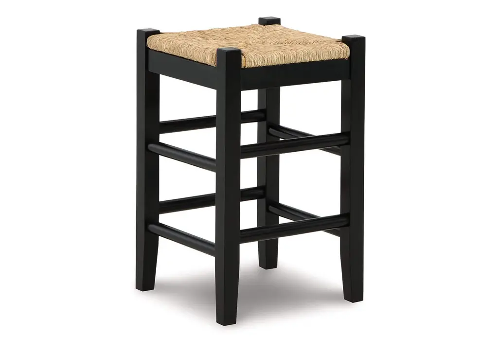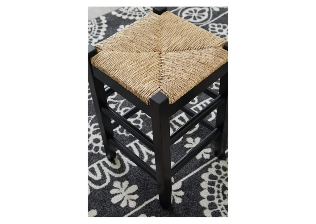 Bring the vintage casual vibe you love to the kitchen with the Mirimin counter height bar stool. A stylish seating solution in a chic black finish, this charming stool completes your dining space with ease. The woven seagrass seat and wood stretchers create an effortlessly beautiful look with endless possibilities. Weight 15.500 lbs. (6.98kgs.)