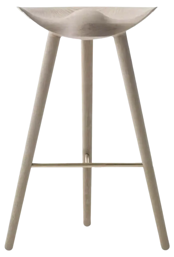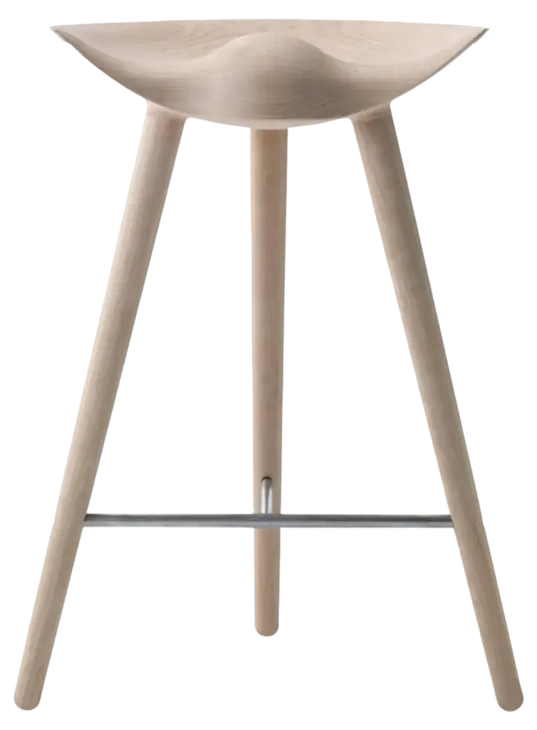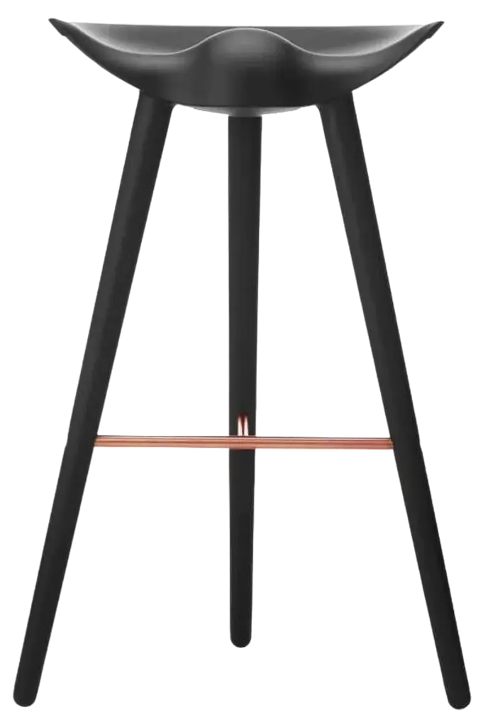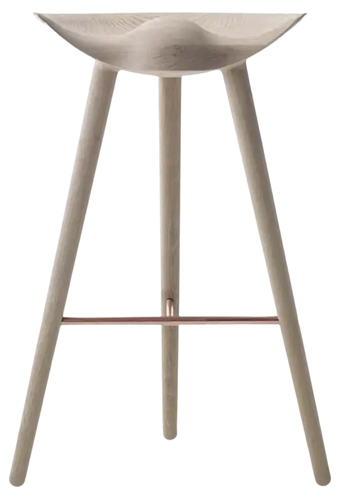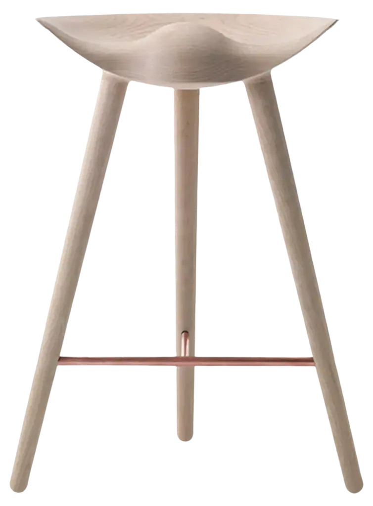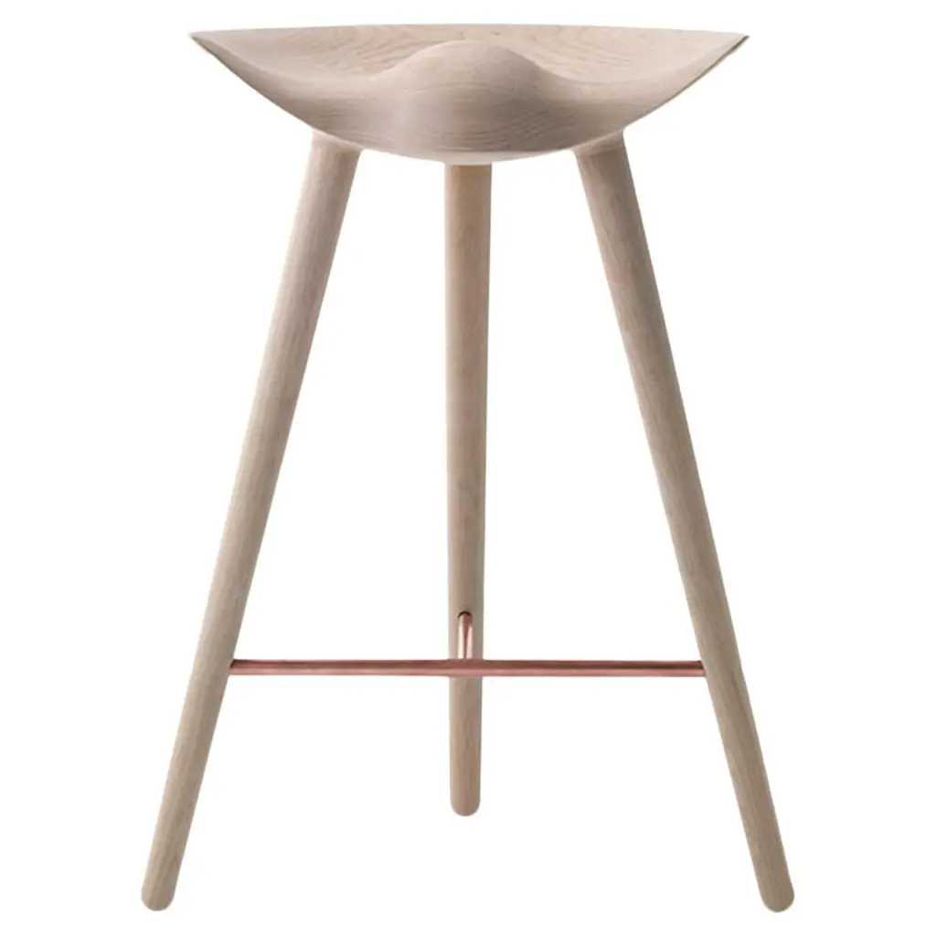 ML 42 Brown oak and copper counter stool by LassenDimensions: H 69 x W 36 x L 55.5 cmMaterials: oak, copperIn 1942 Mogens Lassen designed the Stool ML42 as a piece for a furniture exhibition held at the Danish Museum of Decorative Art. He took inspiration from the stools used by the shoemakers of the past, and transferred the light, elegant look to the creation of this sculptural three-legged stool. The Stool ML42 is still manufactured in Denmark to this day with a focus on quality and Danish craftsmanship, and is considered a collector’s item by international design connoisseurs.By Lassen is a Danish design brand focused on iconic designs created by Mogens and Flemming Lassen, founded by Lassens’ relatives in 2008. Brothers Mogens (1901-1987) and Flemming (1902-1984) Lassen are known as two of Denmark’s greatest architects and designers. Both were renowned pioneers of Danish functionalism and modernist architecture, honoured with numerous prestigious medals and awards. Headed by Mogens Lassen’s grandson Søren Lassen, By Lassen carries on the brothers’ design philosophy by manufacturing their iconic designs as well as products by other designers that complement the Lassen’s functionalist style. The company’s mission is to continue the tradition of timelessness, functionality and quality, and to introduce the Lassen’s design heritage to new generations.