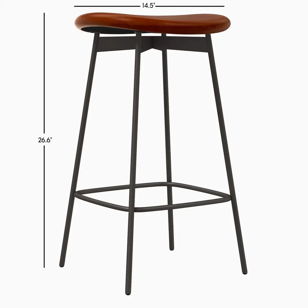 Named for its shapely, comfortably curved seat, the Modern Petal Backless Stool is an update to the classic school chair. The backless design makes this stool easy to tuck under counters, while its leather upholstery and contract-grade frame is truly built to last.