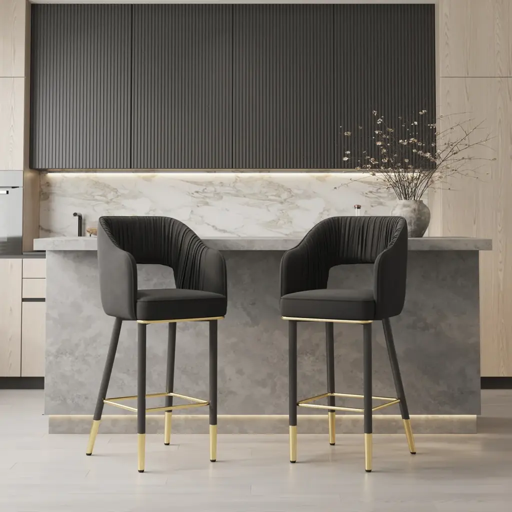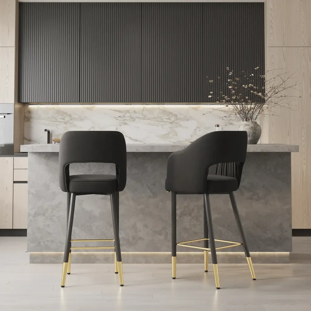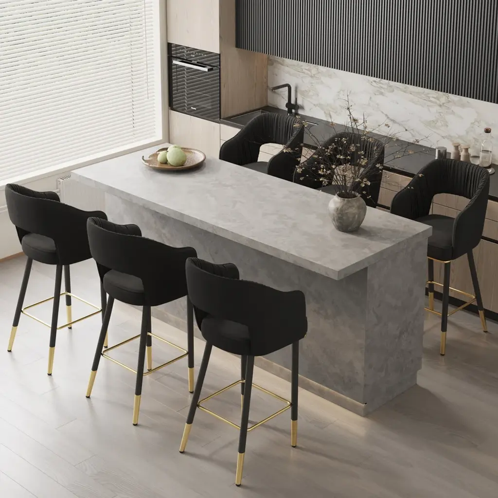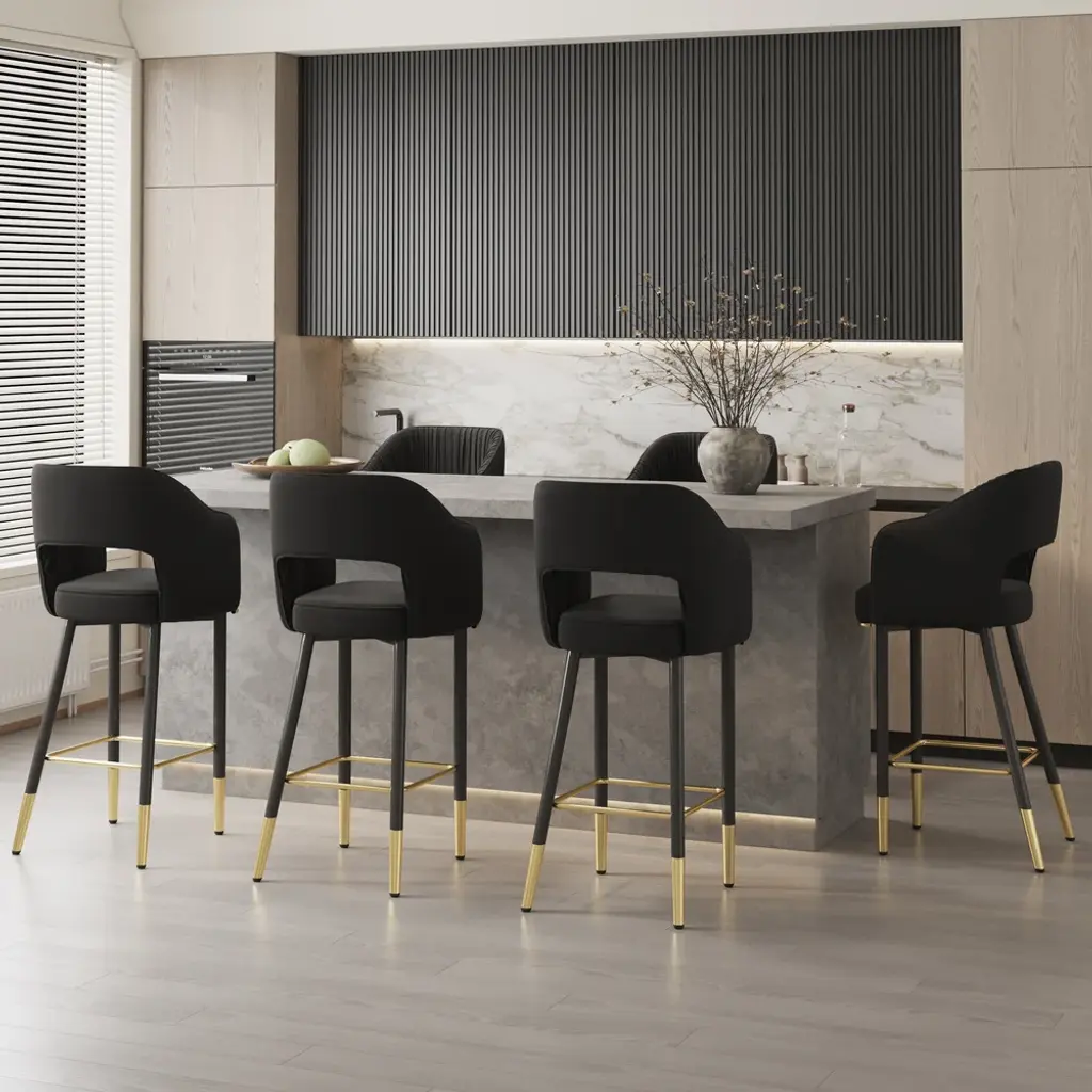 Modern Velvet Counter Stools With Upholstery Black