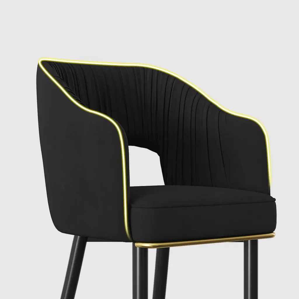 Elevate your space with this modern black velvet bar stool, featuring a sleek low back, comfortable upholstery, and a sturdy footrest for stylish support.