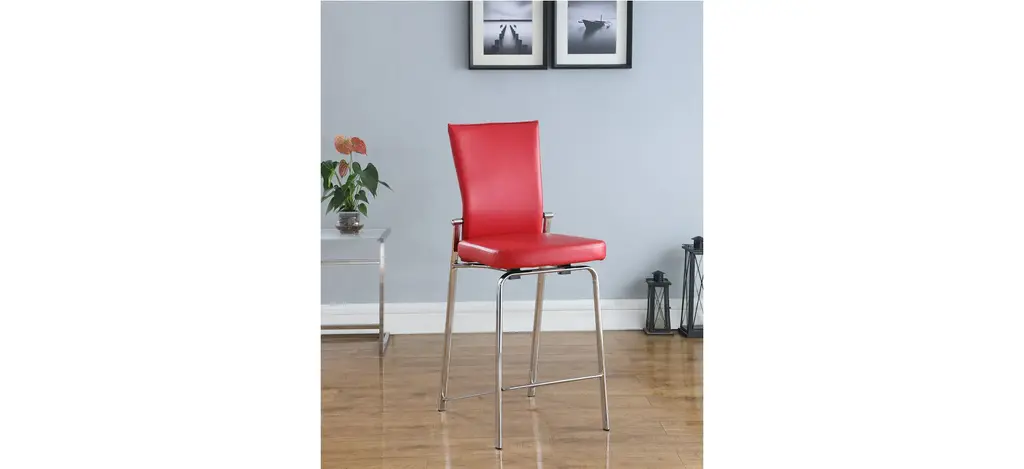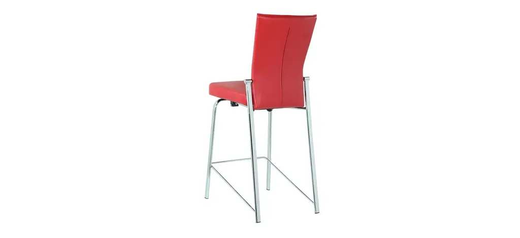 This Mollie stool features motion functionality on the back for increased relaxation, upholstered in quality faux leather with a fashionable accent zipper on the backrest for a sleek look, set on chrome-finished metal legs.