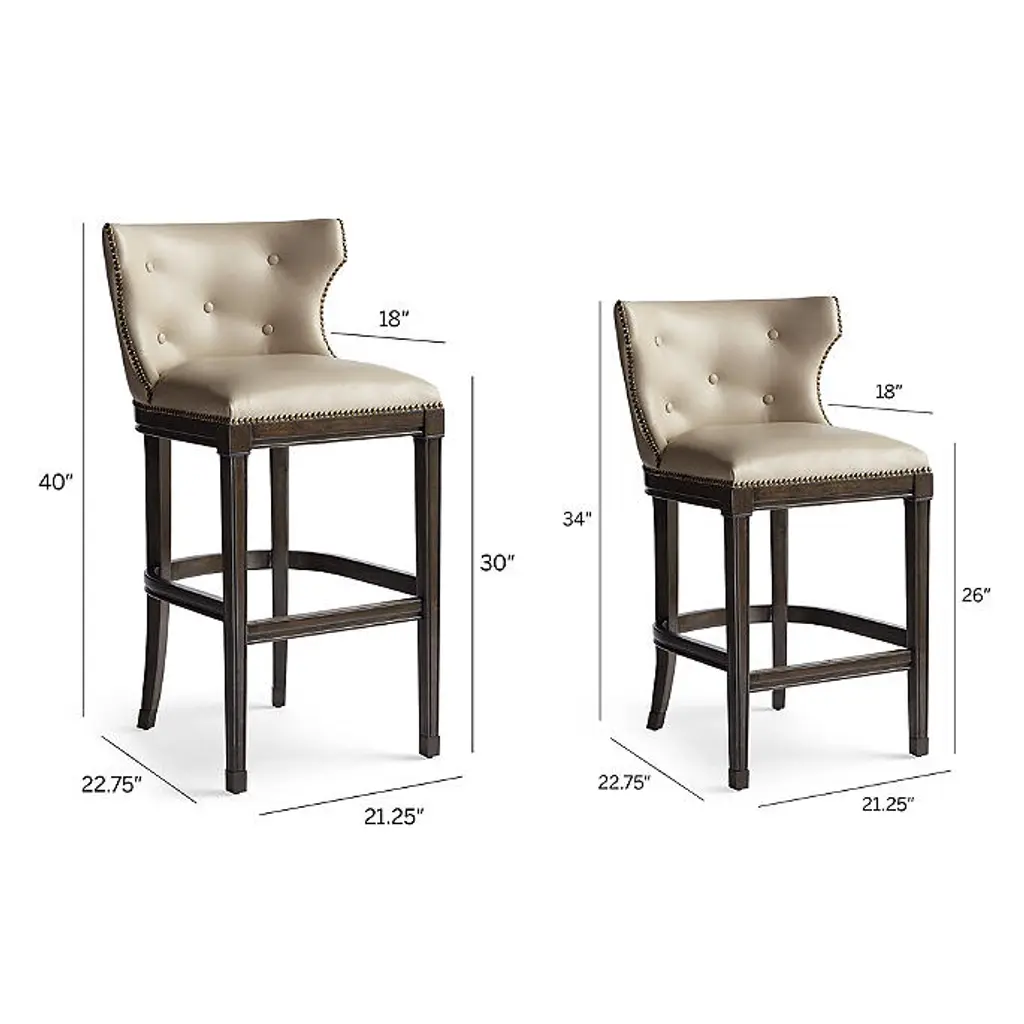 Our Monaco Bar and Counter Stools mix minimalist design with classic construction, offering contoured silhouettes and low-rise backs. The button tufting and antiqued-brass nailhead trim add touches of distinction. Kiln-dried solid hardwood frame constructed with mortise-and-tenon joinery for lasting durability High-density foam cushion surrounded with fiberfill and a polyester wrap for maximum comfort Leather is a natural material, retaining character marks and subtle shade variations; no two pieces are exactly alike Plush Crypton® high-performance fabric offers everyday stain, moisture and odor protection Button-tufted seat Nonmarring floor glides protect floors Arrives assembled Imported A Frontgate exclusive. At Frontgate, our primary focus is quality. We guarantee that every product we sell will stand up to the supreme test – our customers' satisfaction. To learn more about our policies, visit our Shipping & Processing, Returns & Exchanges and Warranty & Price Guarantee pages. Our Monaco Bar and Counter Stools mix minimalist design with classic construction, offering contoured silhouettes and low-rise backs. The button tufting and antiqued-brass nailhead trim add touches of distinction. Kiln-dried solid hardwood frame constructed with mortise-and-tenon joinery for lasting durability High-density foam cushion surrounded with fiberfill and a polyester wrap for maximum comfort Leather is a natural material, retaining character marks and subtle shade variations; no two pieces are exactly alike Plush Crypton® high-performance fabric offers everyday stain, moisture and odor protection Button-tufted seat Nonmarring floor glides protect floors Arrives assembled Imported A Frontgate exclusive. At Frontgate, our primary focus is quality. We guarantee that every product we sell will stand up to the supreme test – our customers' satisfaction. To learn more about our policies, visit our Shipping & Processing, Returns & Exchanges and Warranty & Price Guarantee pages.