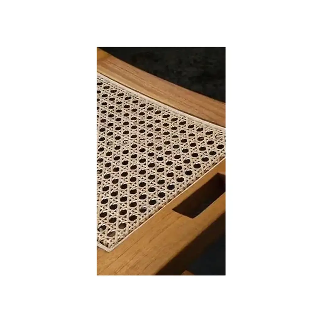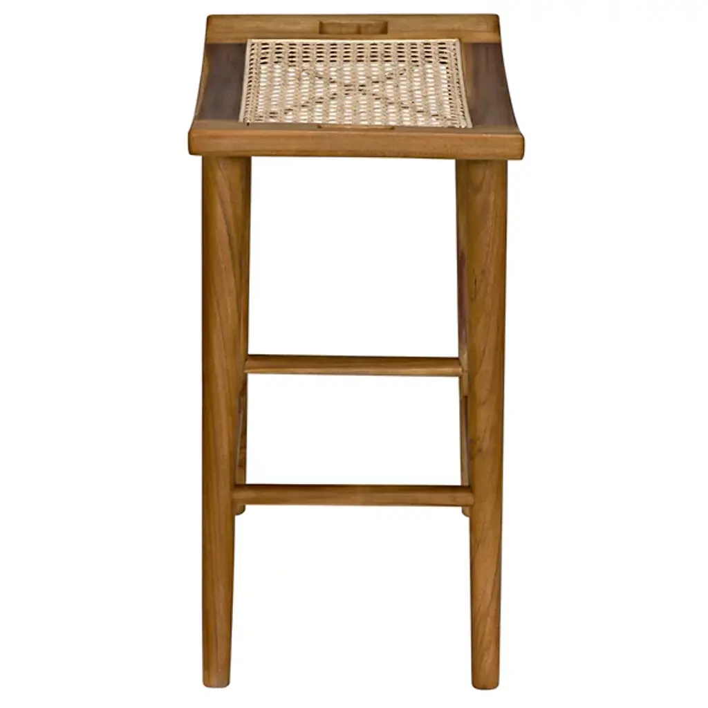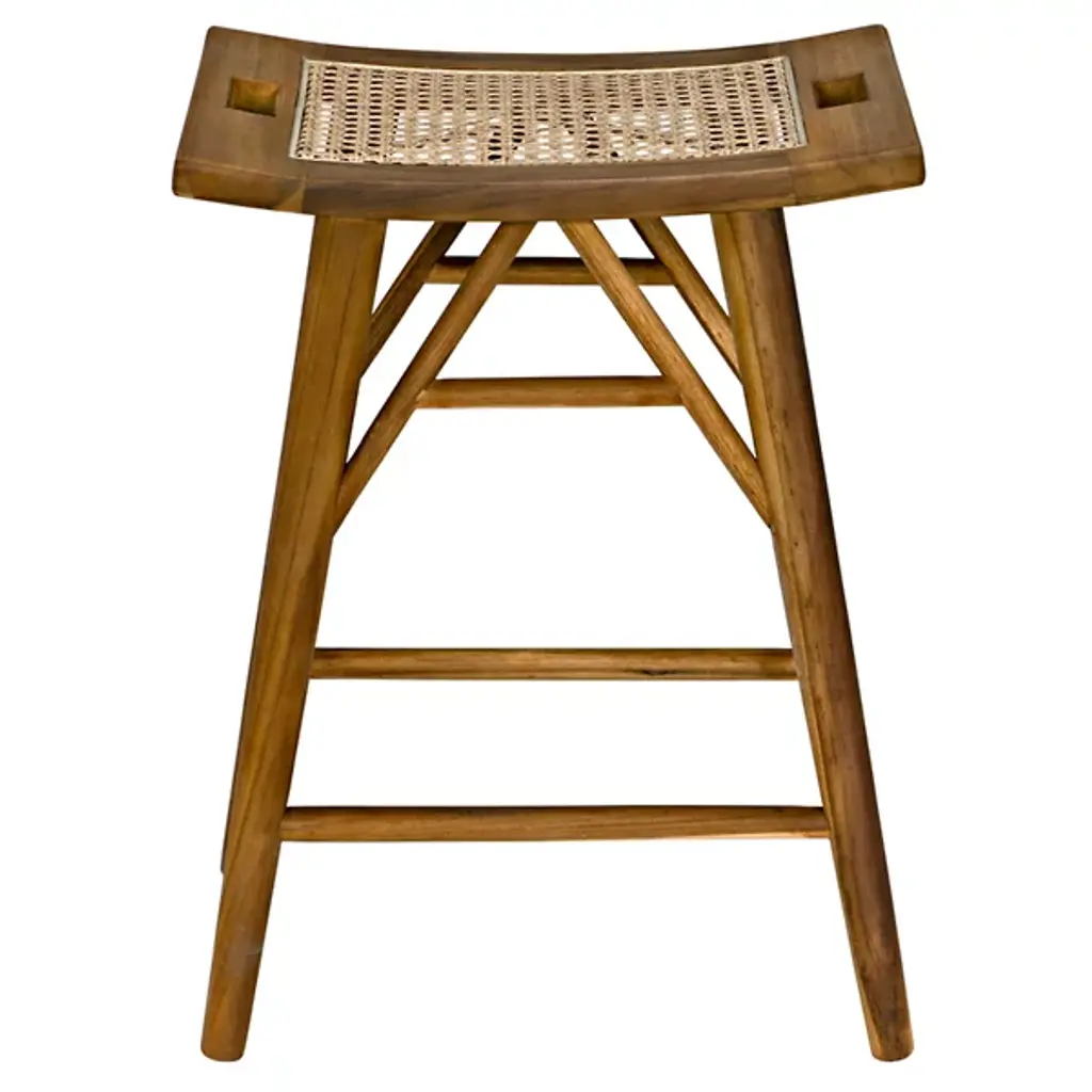 The Murphy Counter Stool from Noir features a saddle-shaped seat that offers exceptional comfort despite its minimal profile. Teak frames the hand-woven caning seat, creating a natural cradle that accommodates the body's contours. Angled legs with strategic crossbars ensure stability without unnecessary bulk. The thoughtful triangular bracing system adds structural integrity while creating visual rhythm throughout the base. Caning introduces breathability and lightness to contrast with the solid wooden framework. This counter-height seating solution demonstrates how traditional materials can be reimagined for contemporary living without losing their inherent warmth and character.