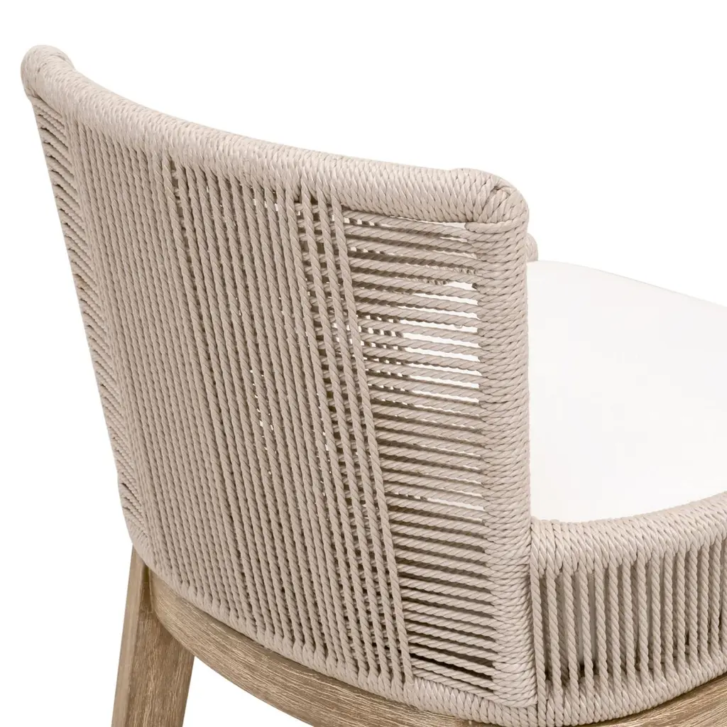 The fine details of the Myrielle Counter Stool make it an exquisite addition to many dining and bar spaces. With dimensions of 20.75" wide, 21" deep, and 35" high, and a comfortable 27" seat height, it is crafted with a solid base. The handwoven rope brings a distinctive texture and eye-catching weave design to the seat back. This is complemented by a high-performance fixed seat cushion, made from a resilient polyester-nylon blend. Featuring a sturdy "X" stretcher base design with metal covered footrest, this stool provides stability and transitional style, making it an ideal choice for elevating dining and bar spaces with its refined and durable design.