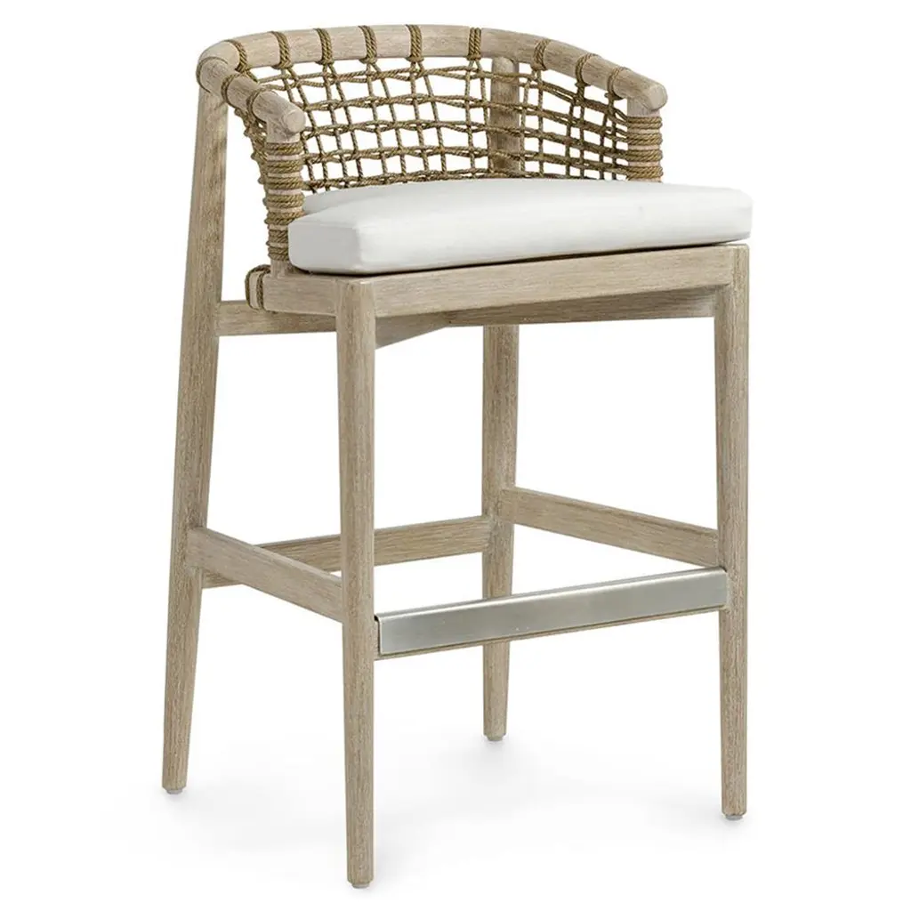 Myrielle Mahogany/rope Counter Stool, Oyster/pearl Performance