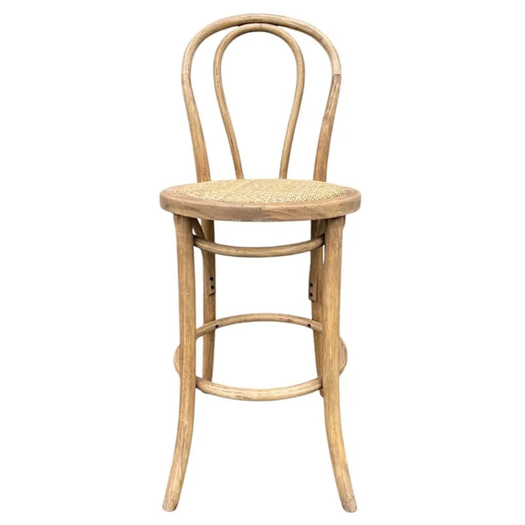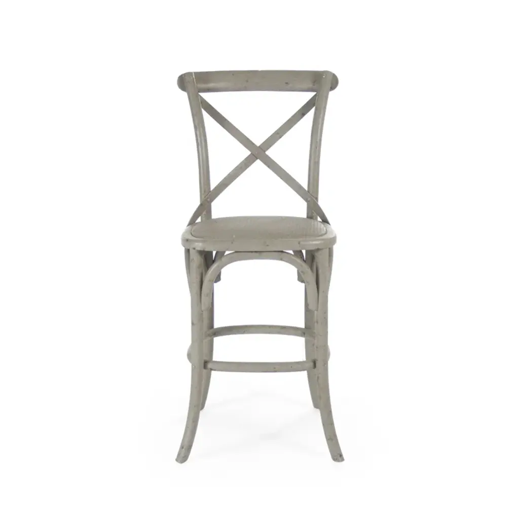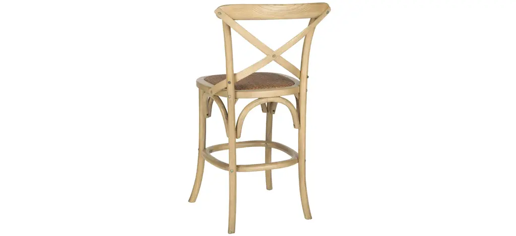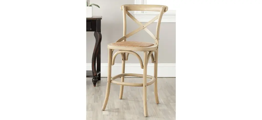 With its willowy frame and iconic cross back inspired by Michael Thonet's classic bistro chair, the Nadine counter stool by Safavieh is ideal in kitchen or great room. Crafted of solid American oak, including the X arch brace, this casual counter stool is finished in weathered oak with a seat of rattan caning.