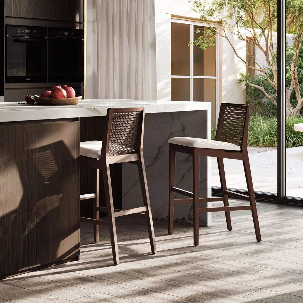 Elevate your home decor with the skillfully crafted Nardia Cane Stool from Urbia. Made of solid Tauari wood, this bar stool offers durability and natural beauty. With a plush woven fabric seat and a captivating blend of wood and cane webbing on the back, it provides both comfort and timeless charm for an effortlessly accented home bar or kitchen countertop. Highlights