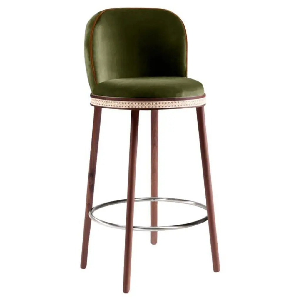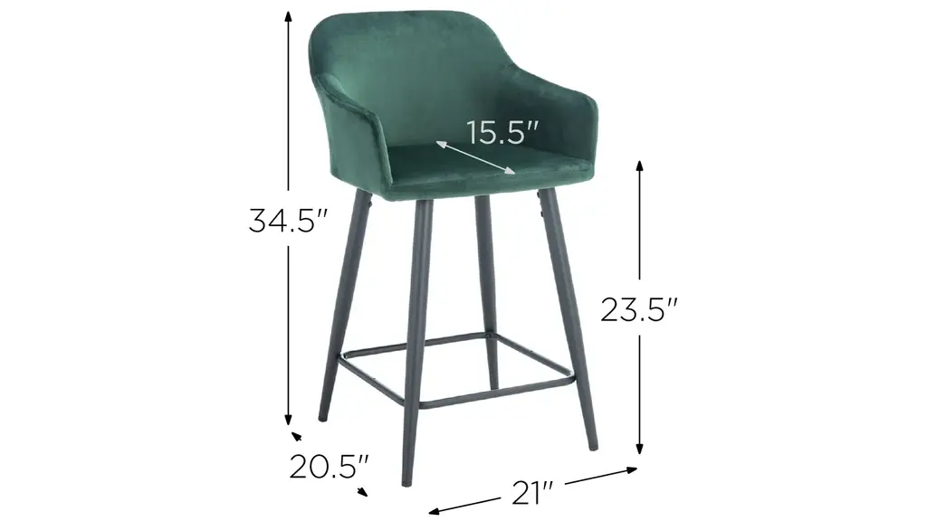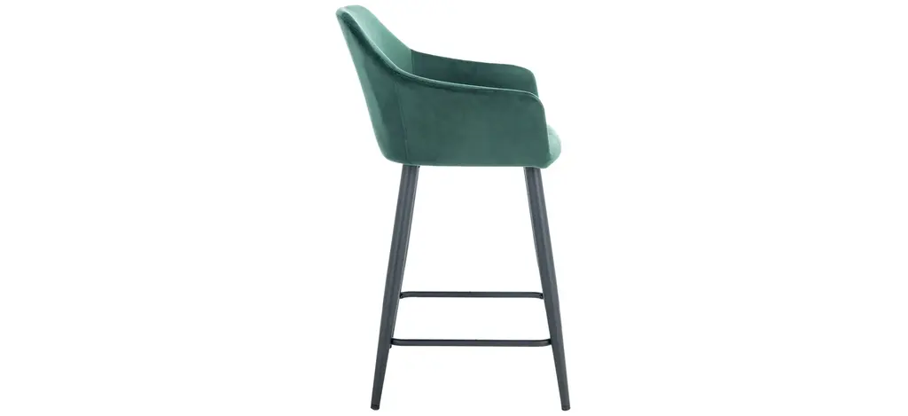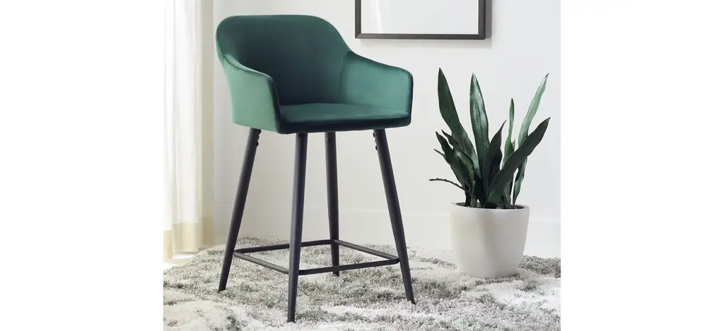 This Nari Counter Stool elevates the elegance and comfort of a glamorous accent chair and transforms it for stylish seating in any kitchen or breakfast nook. Its plush malachite green velvet is ultra soft to the touch, while its dramatically angled black legs give additional visual depth.