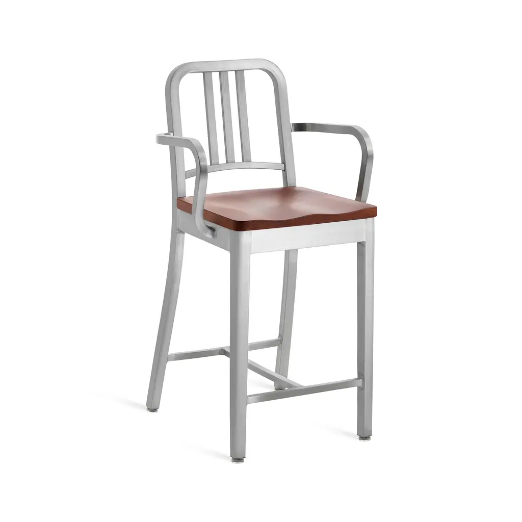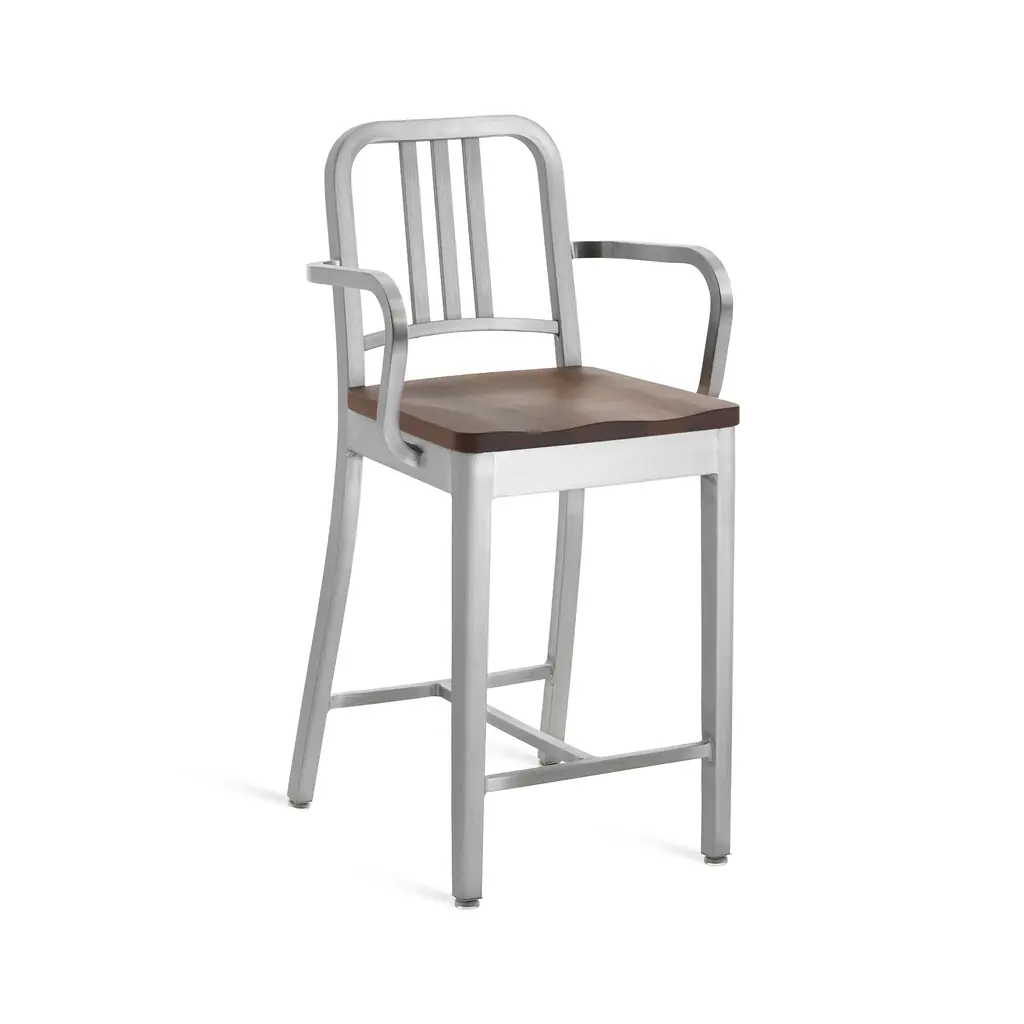 Navy Bar And Counter Stool With Arms & Wood Seat