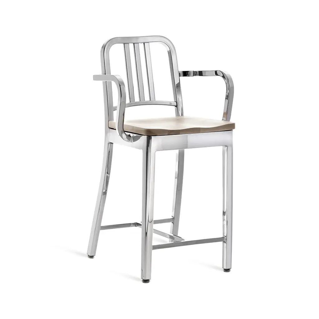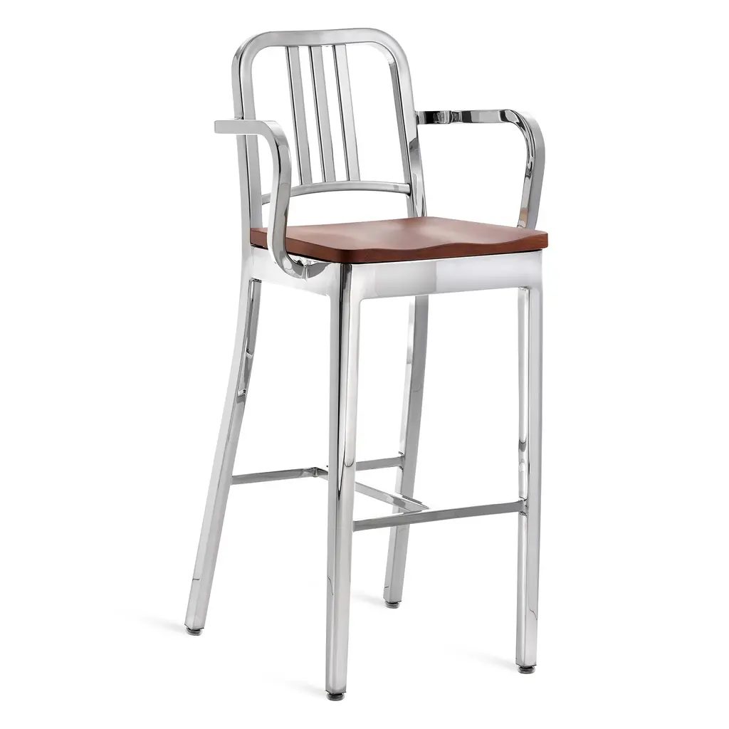 Navy Bar And Counter Stool With Arms & Wood Seat