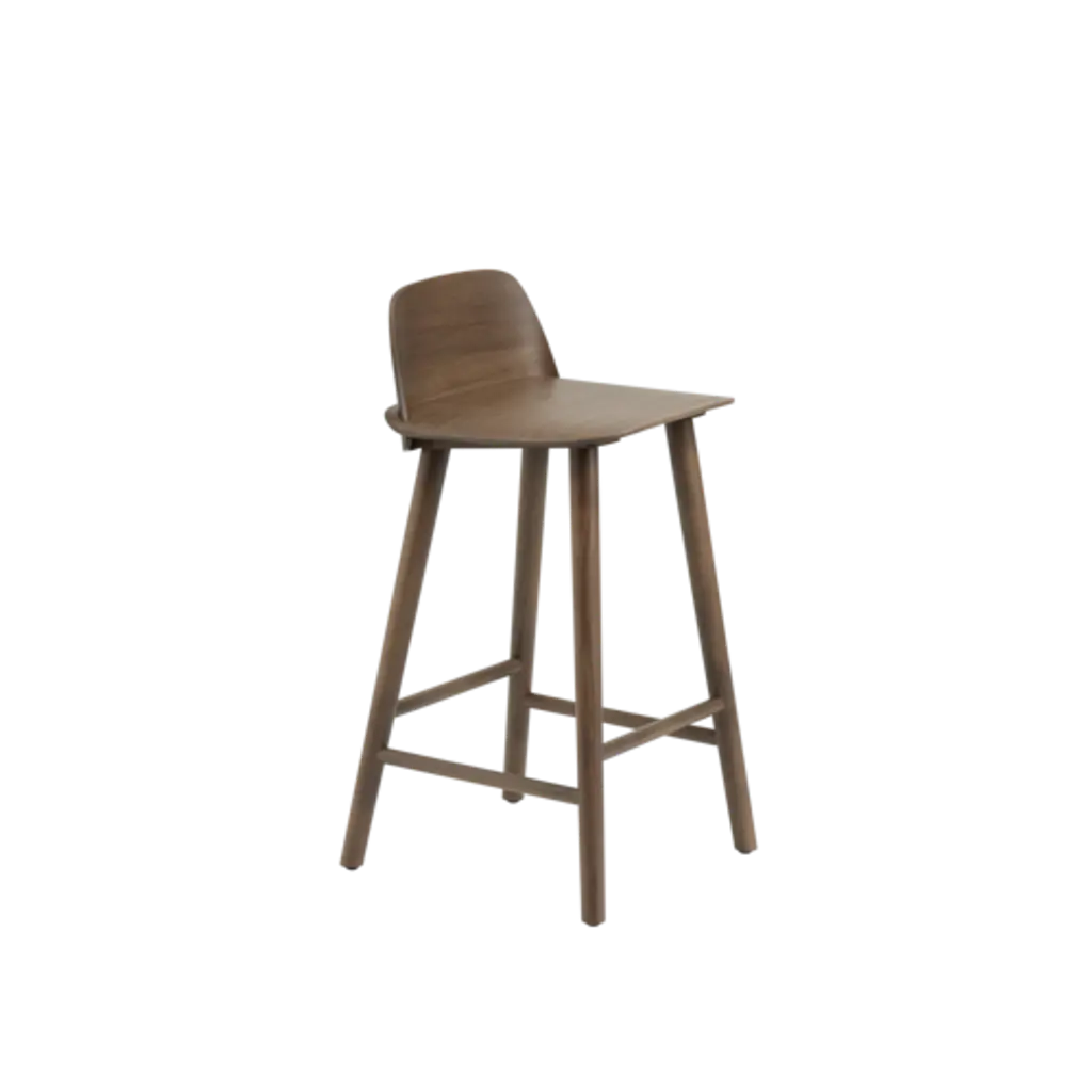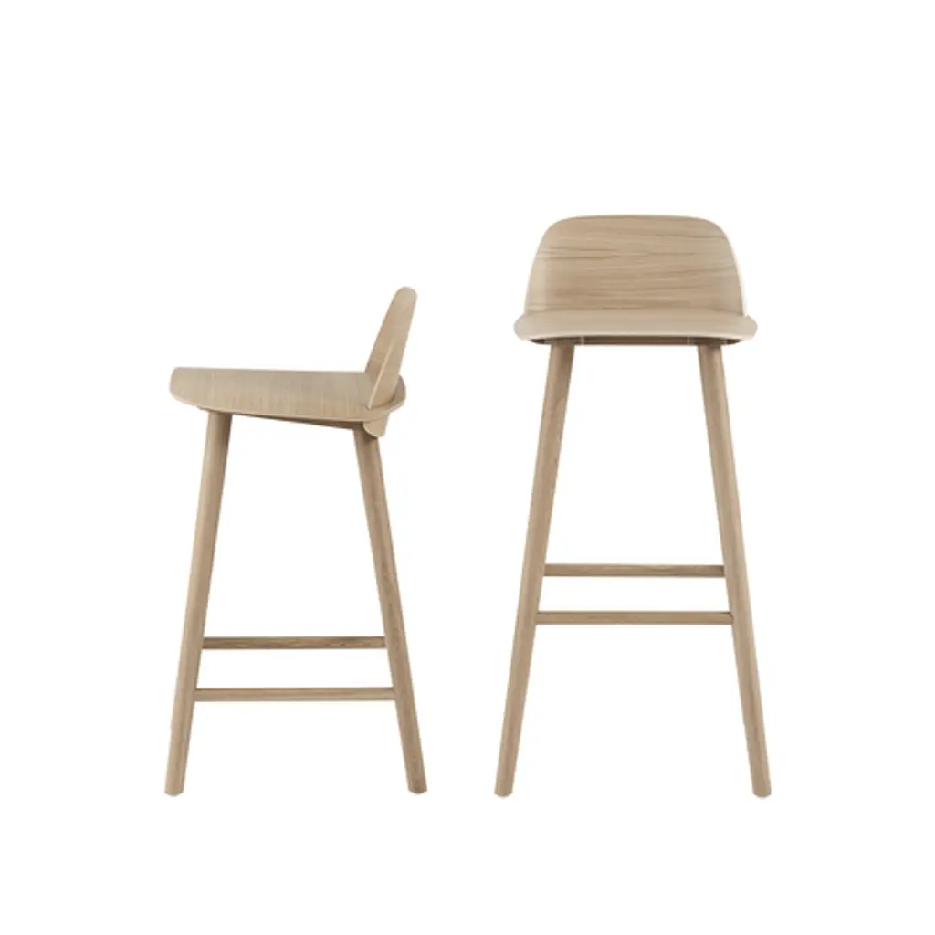 The Nerd Counter Stool is designed with a playfully contemporary expression, joined by its wooden Scandinavian materiality. The seamless integration of its back and seat makes for a characterful detail alongside the curved edges of its seat.