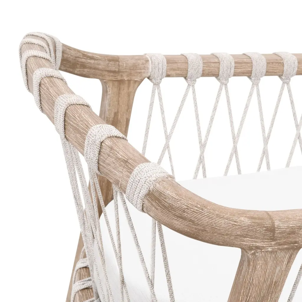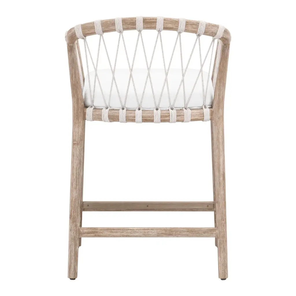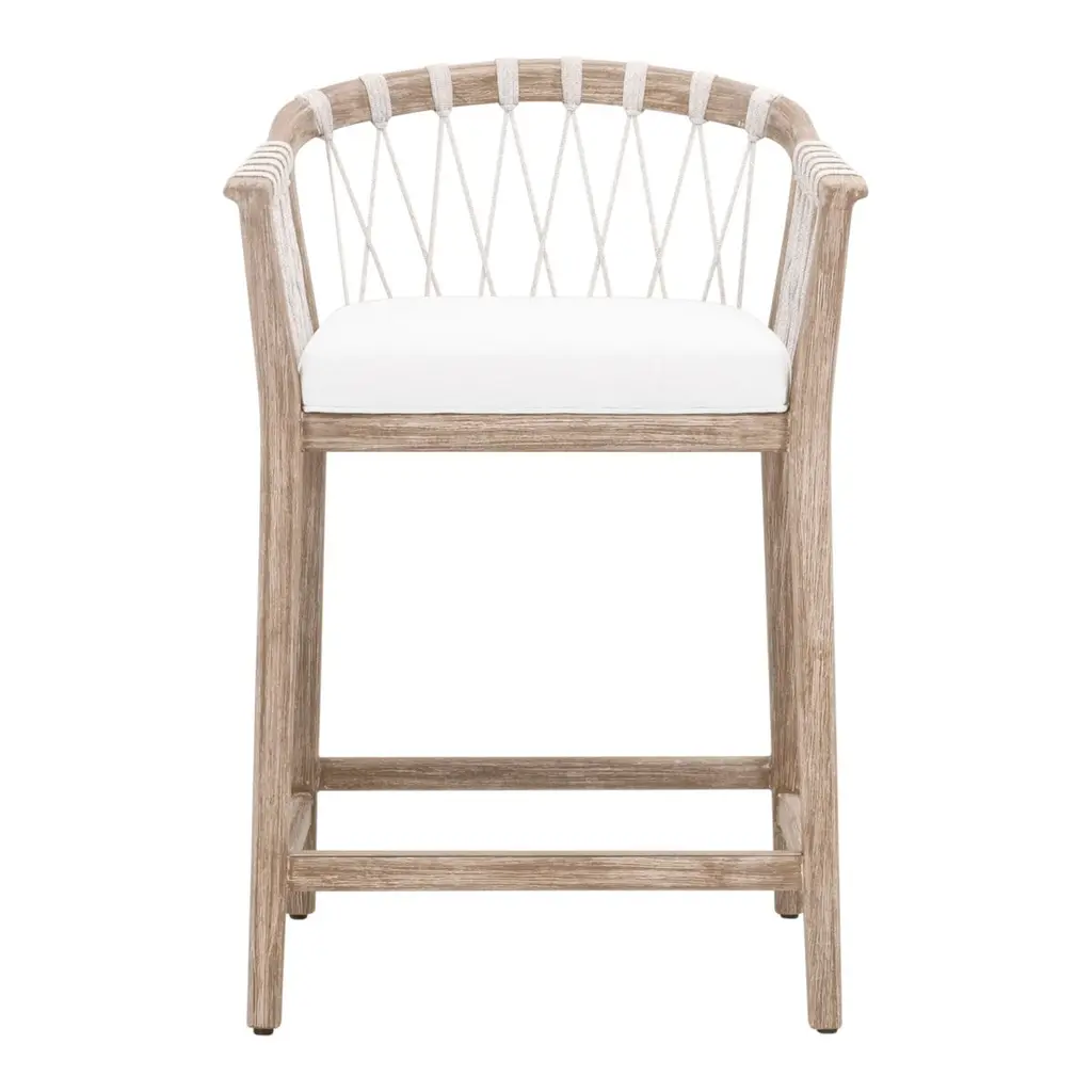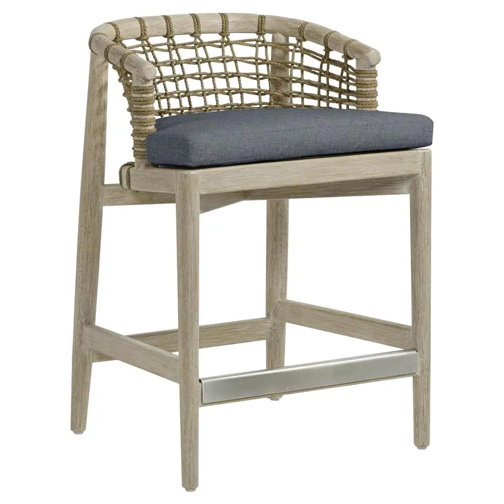 Transform your kitchen or bar area with the Neri Counter Stool. This stool harmoniously blends beachy, classic, and contemporary elements for a unique seating solution. The frame, expertly crafted from solid wood, features a refined finish, adding a touch of understated elegance to any space. The seat is designed with a distinctive hand-wrapped rope on the back and high-performance fabric on the seat cushion, ensuring durability and easy cleaning. The fixed seat cushion with piping detail enhances the tailored appearance of the stool. Additionally, the L-shaped metal footrest provides support while seamlessly blending with its wood counterparts. The stool combines exceptional craftsmanship, thoughtful design, and precise dimensions to enhance your interior.
