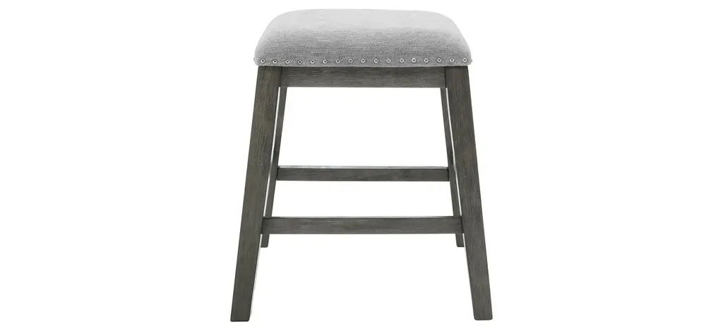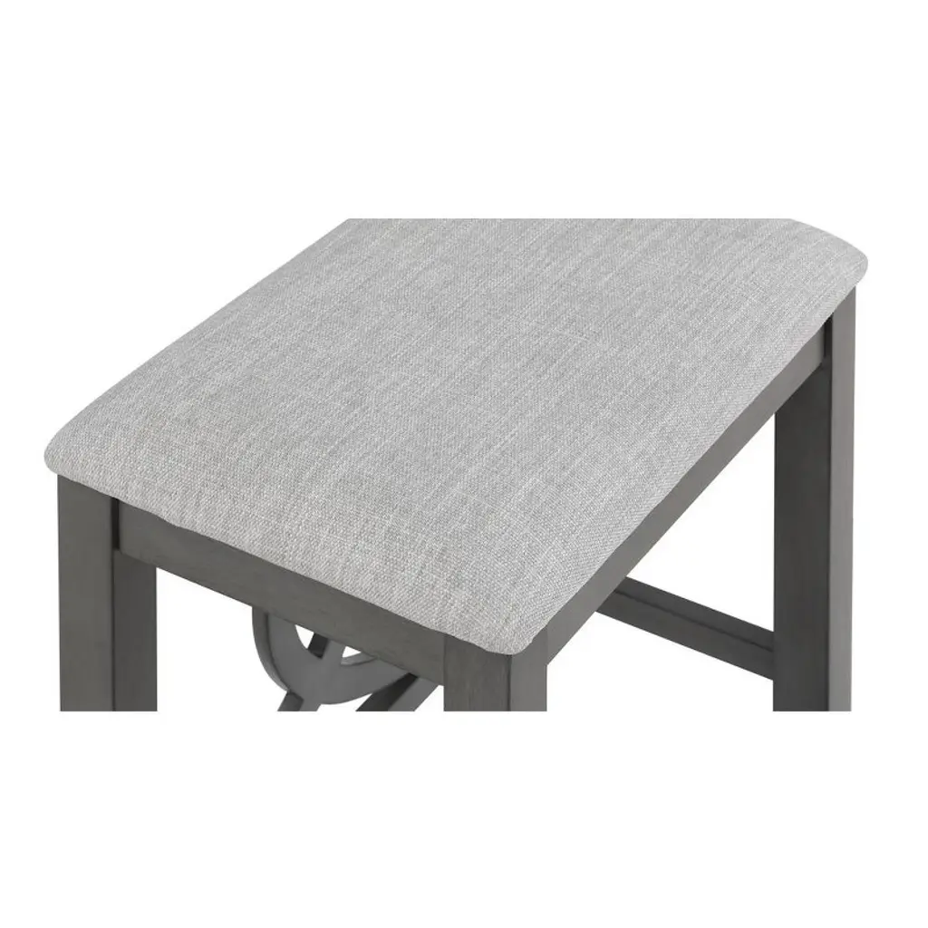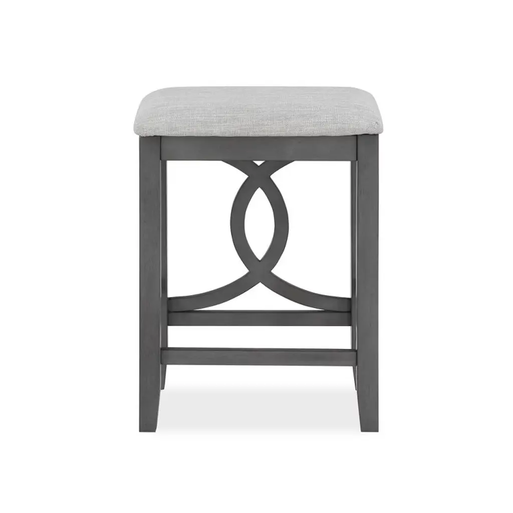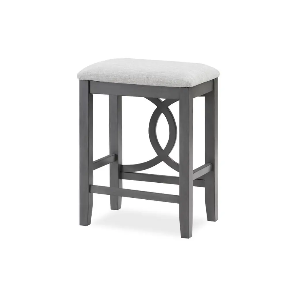 The Bella Counter Stools are crafted from Rubberwood and supported by solid wood legs reinforced with base stretchers, ensuring stability and longevity. The clean and contemporary Gray finish is achieved through a meticulous multistep process that accentuates the wood's natural grain patterns. Designed for comfort, the full foam cushion provides a plush seating experience and is covered in an easy-care 100% polyester fabric The distinctive design of interlocking half circles and tapered legs adds a unique visual charm, making these counter stools a stylish and enduring addition to your home.